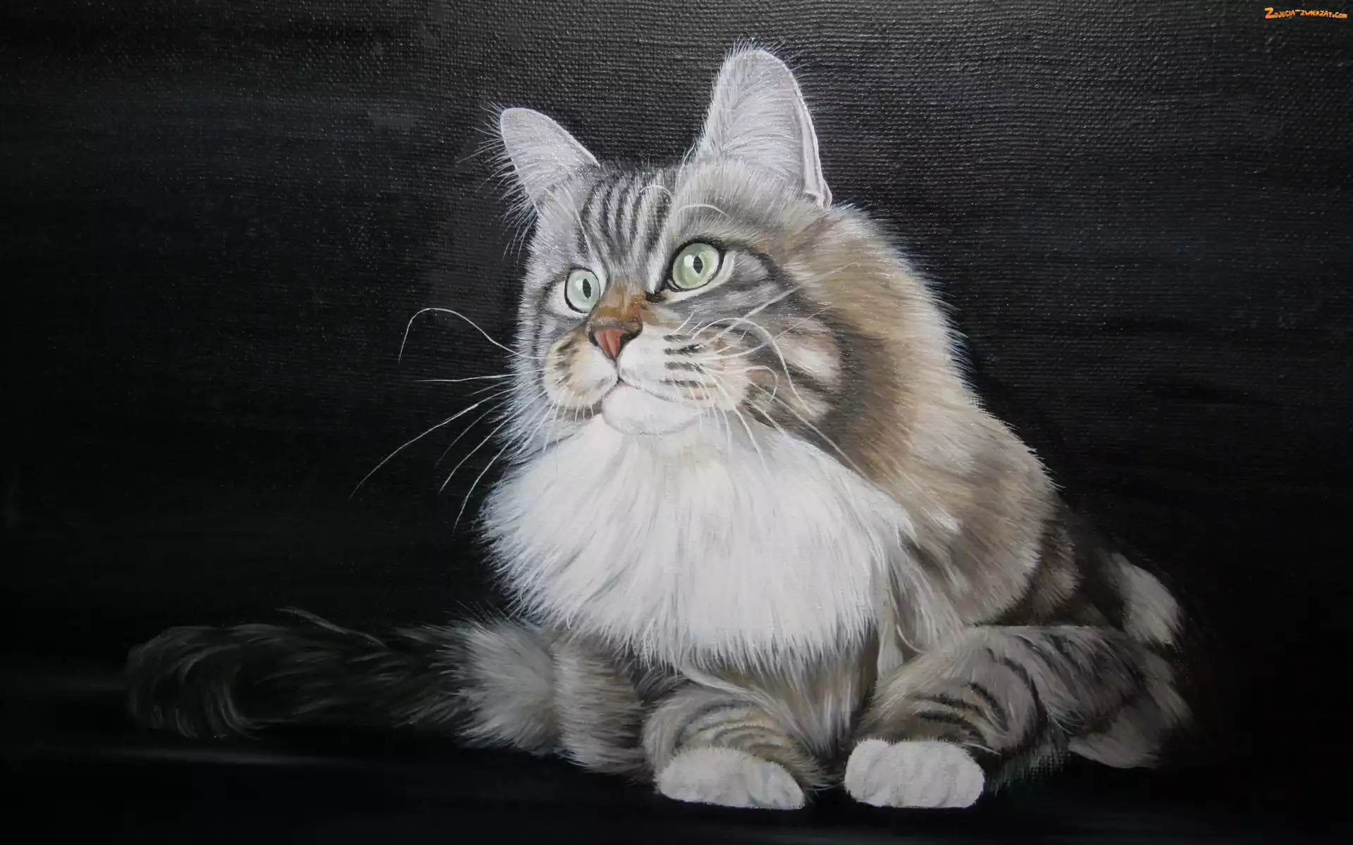 Zdjęcie: Reprodukcja obrazu, Kot, Ciemne tło