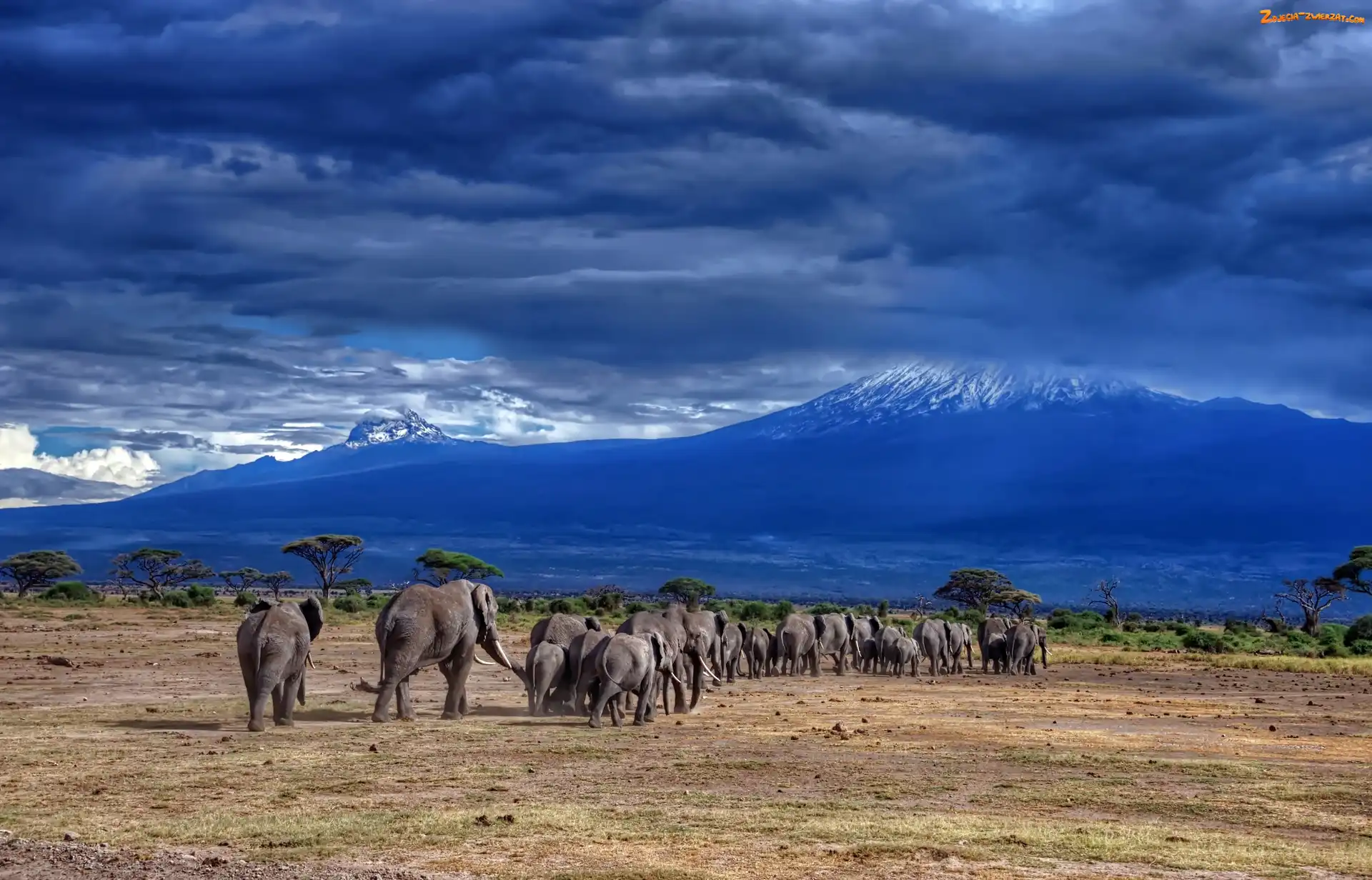 Zdjęcie: Góry, Afryka, Step, Park, Tanzania, Słoni, Kilimandżaro, Narodowy, Rodzina