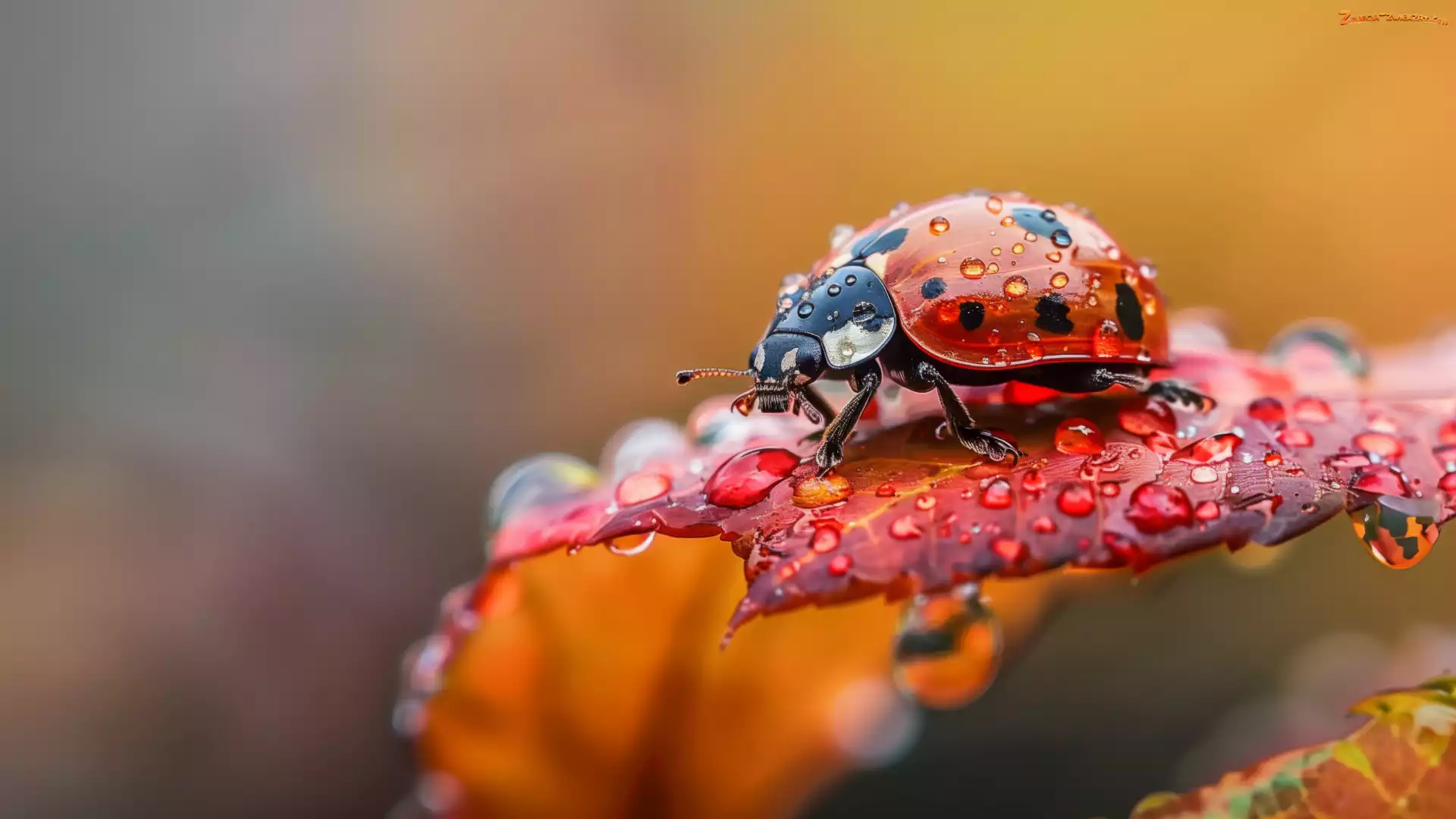 Zdjęcie: Liść, Rosa, Makro, Biedronka, Krople