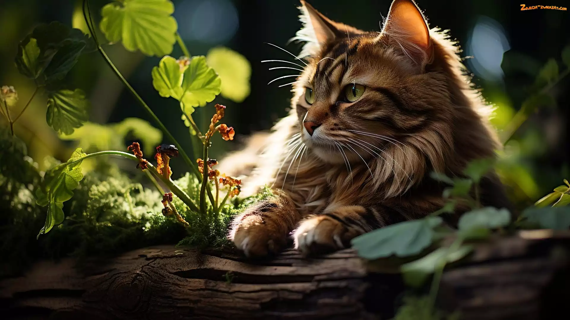 Zdjęcie: Rośliny, Kot, Kłoda