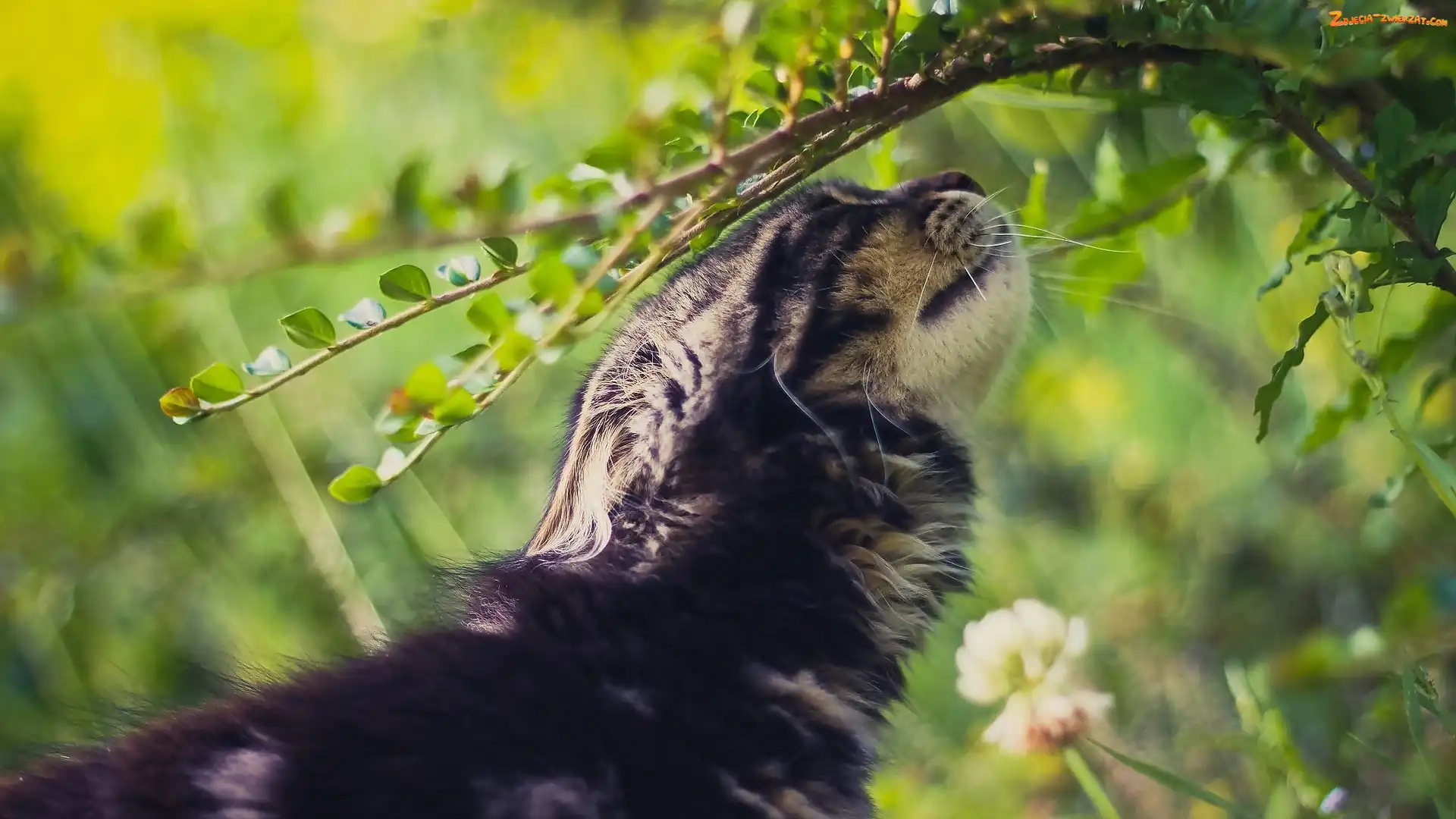 Zdjęcie: Rośliny, Gałęzie, Kot, Krzew