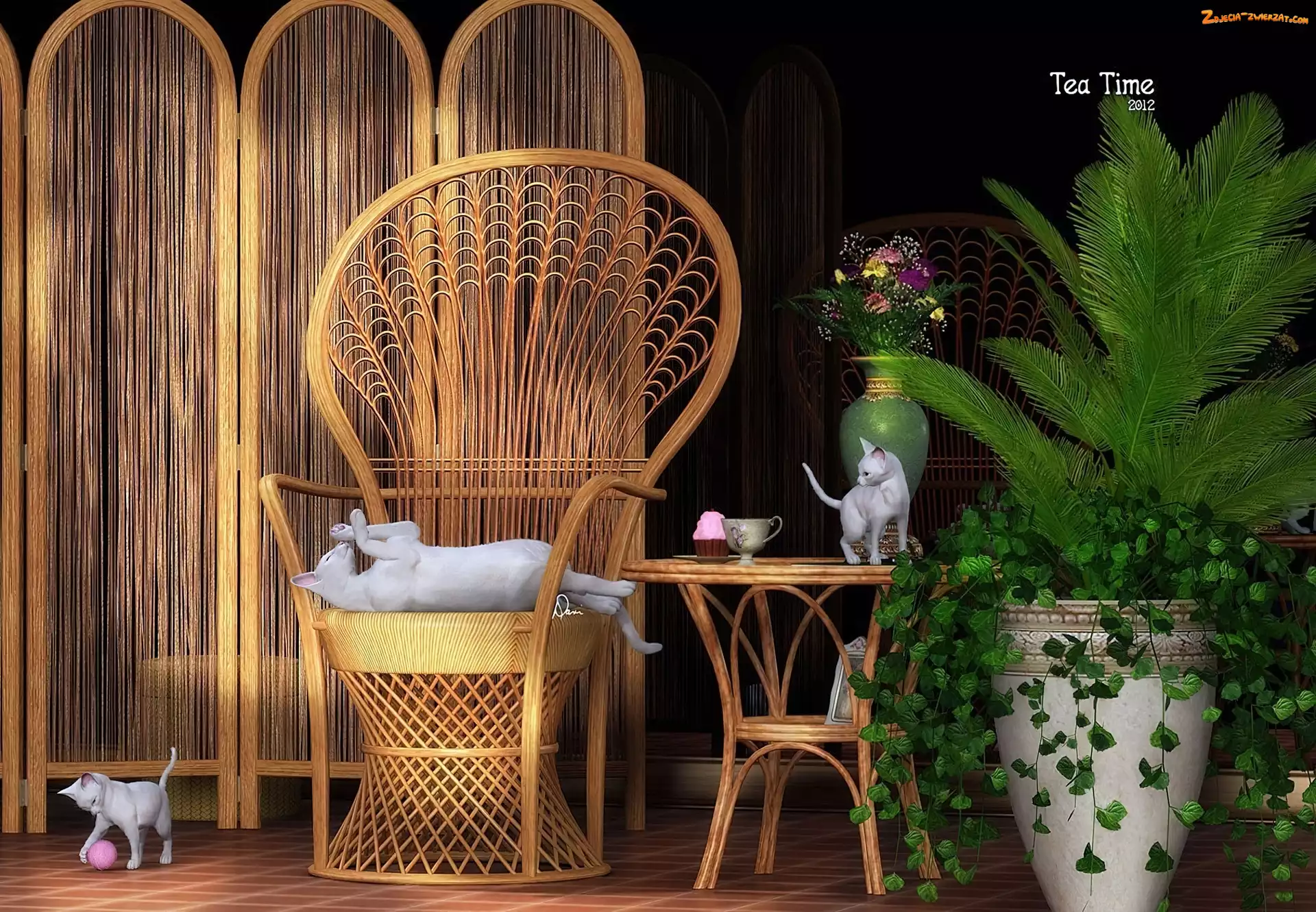 Zdjęcie: Rośliny, Meble, Koty, Wiklinowe