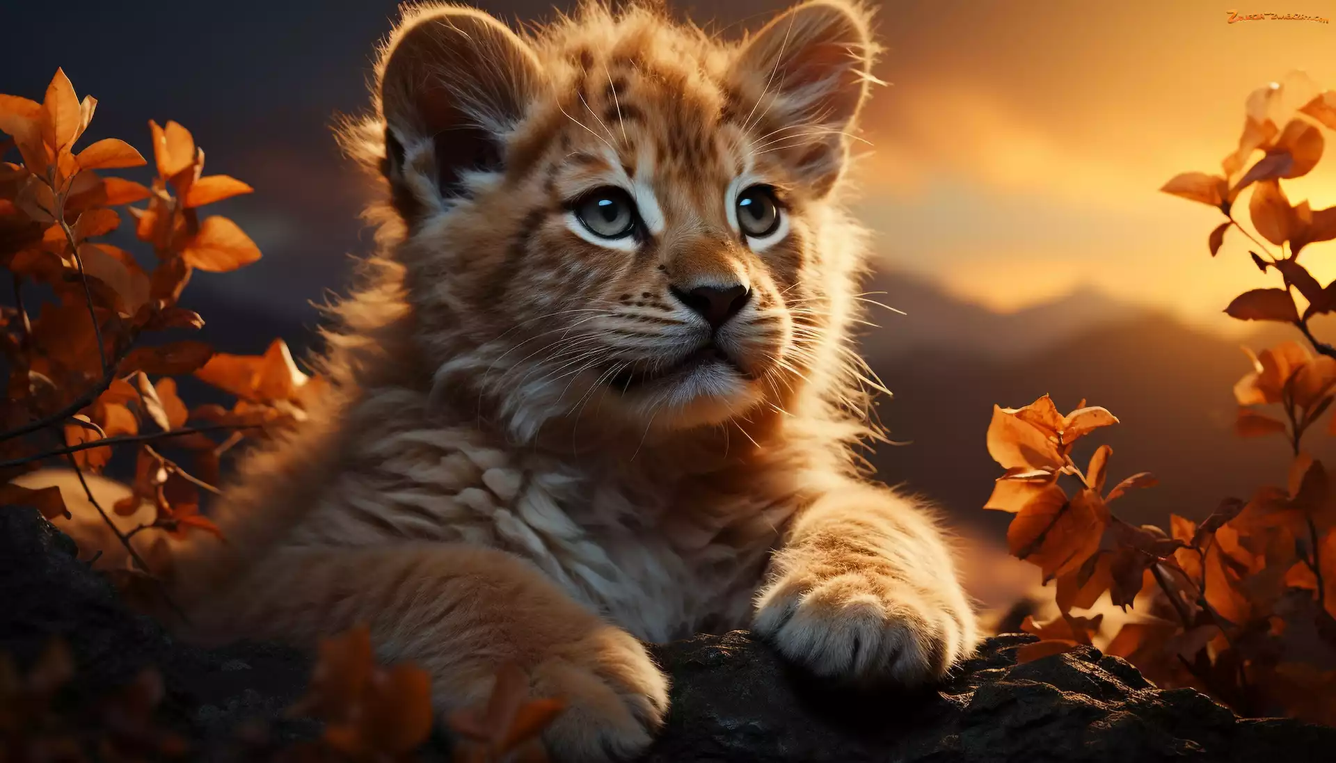Zdjęcie: Mały, Tygrys, Grafika, Rośliny