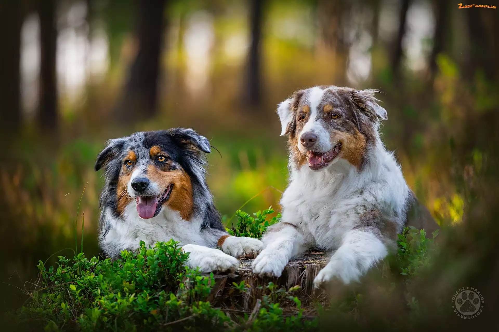 Zdjęcie: Pniak, Owczarki australijskie, Rośliny, Dwa, Psy