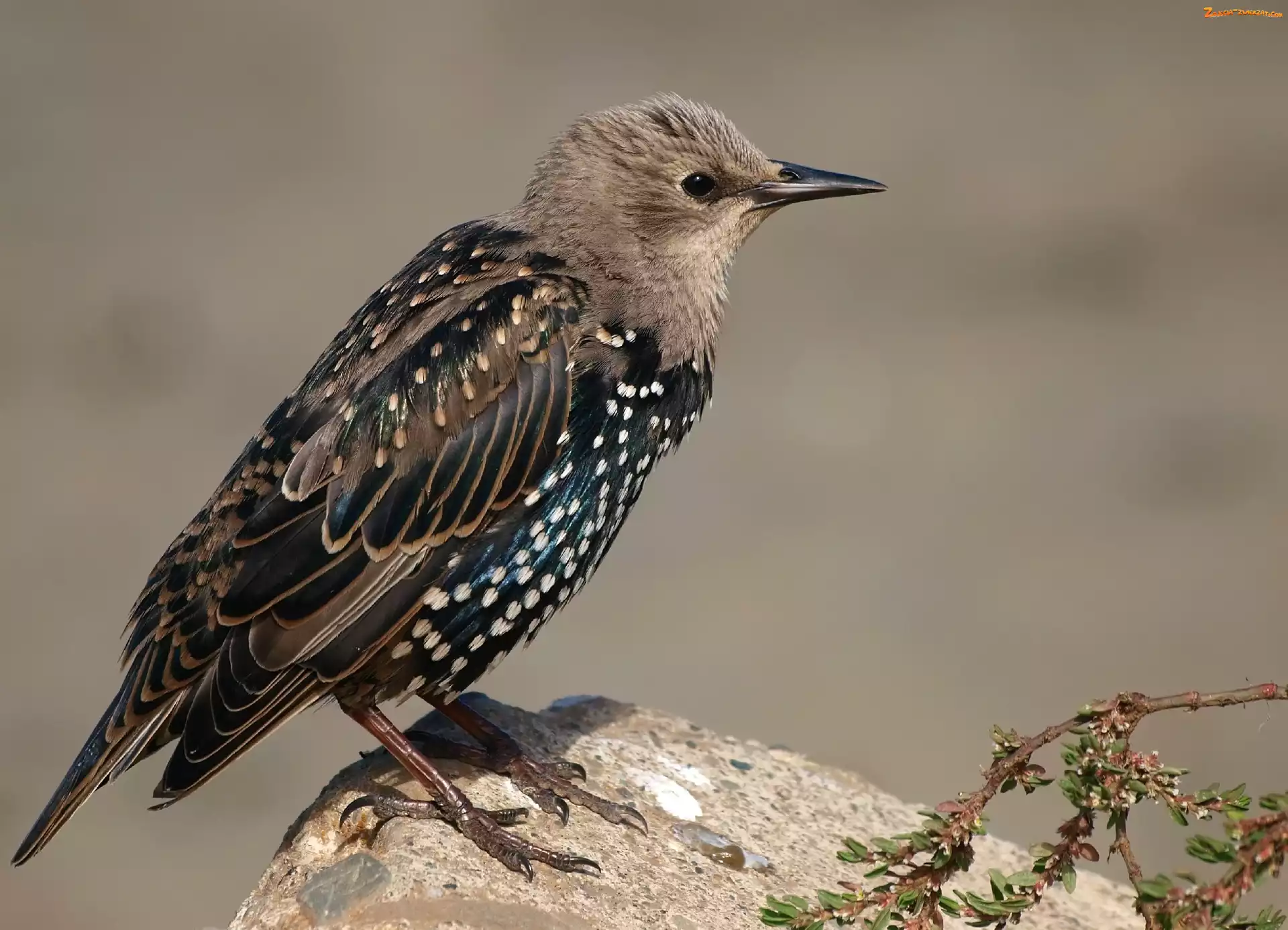 Zdjęcie: Rośliny, Gałązka, Szpak, Ptak, Kamień