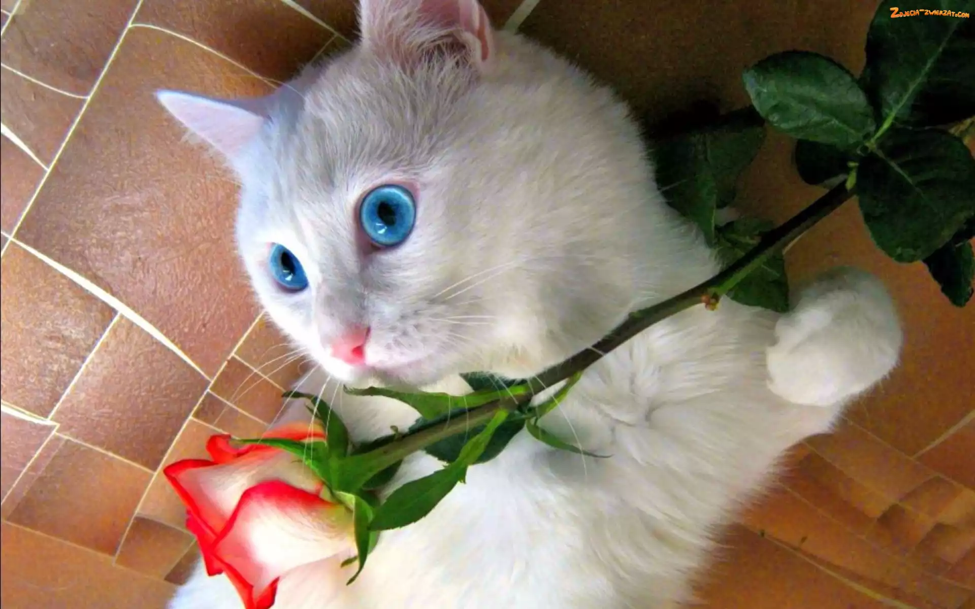 Zdjęcie: Róża, Oczy, Kotek, Biały, Niebieskie