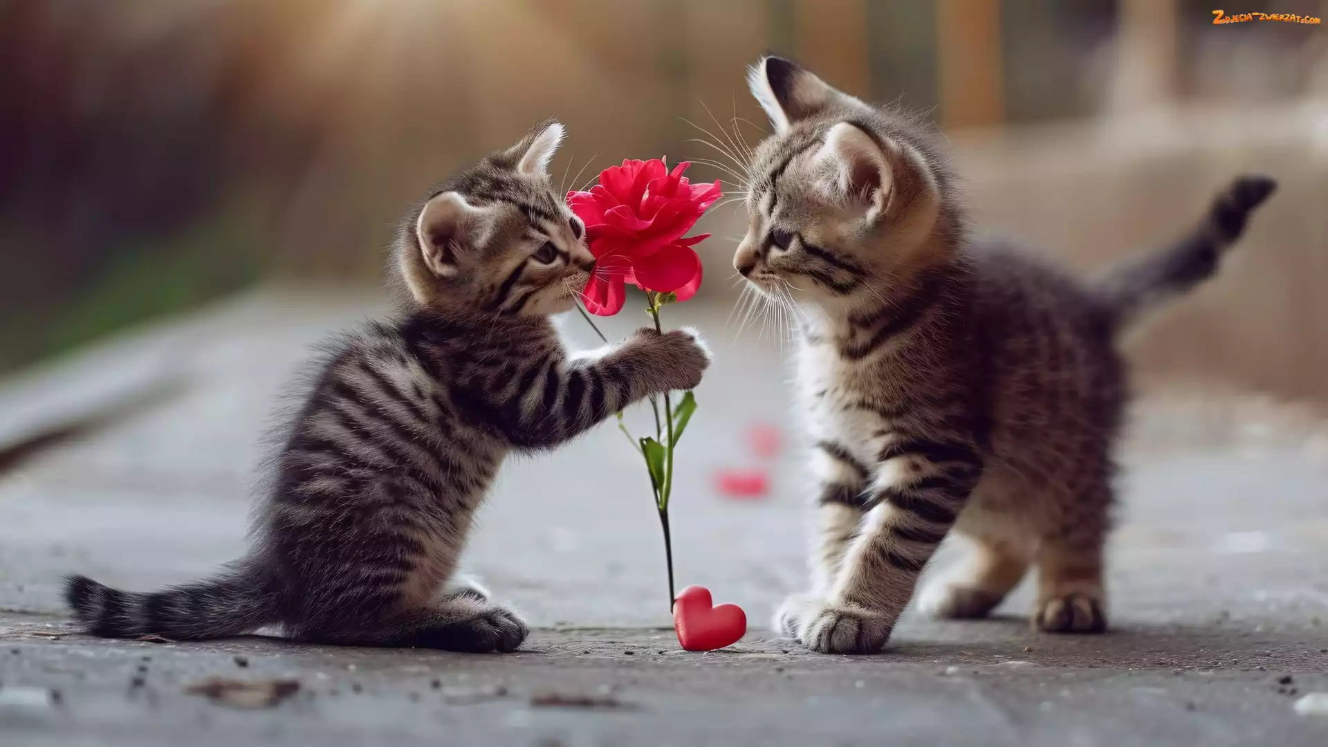 Zdjęcie: Dwa, Kotki, Czerwona, Róża