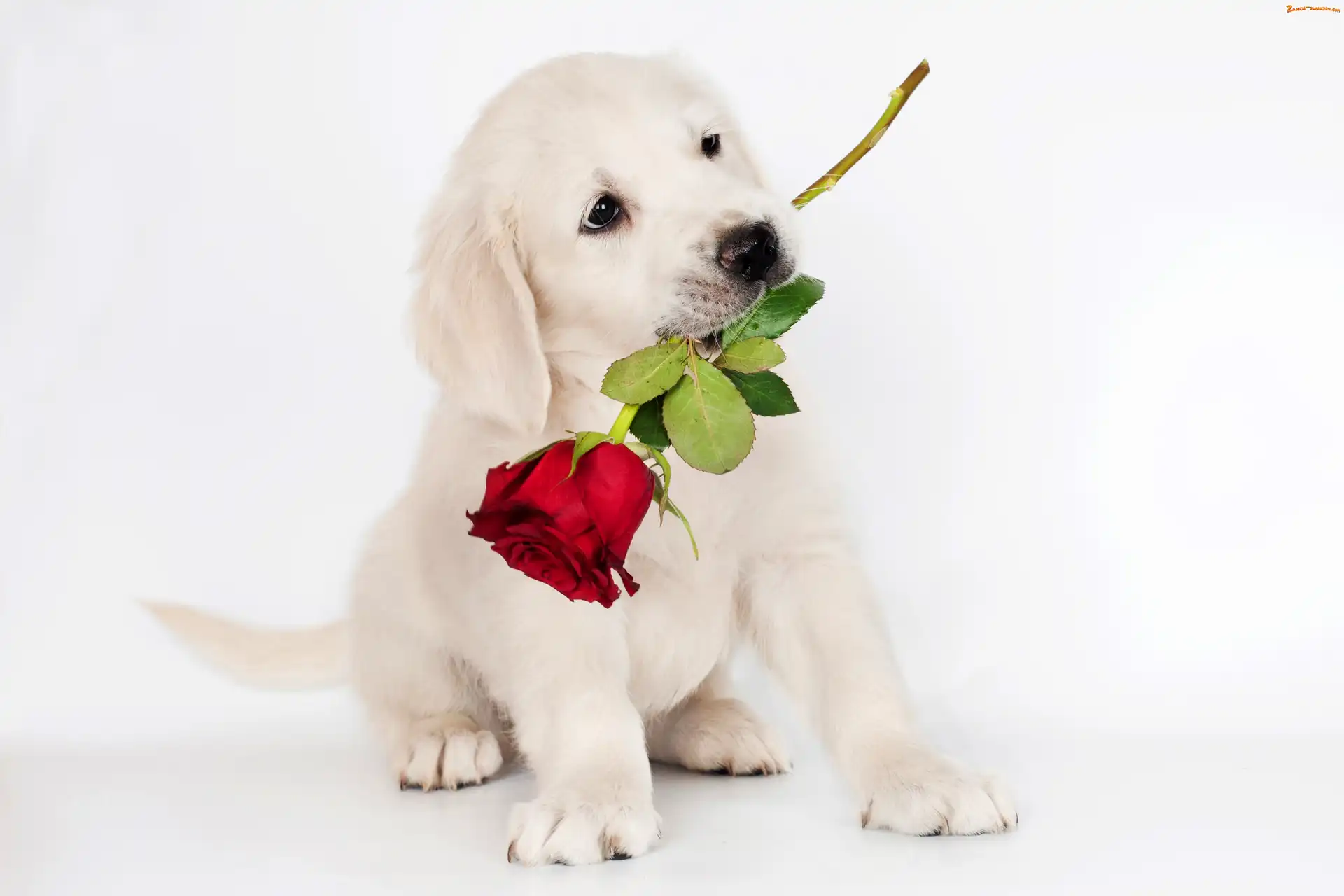 Róża, Słodki, Szczeniak, Pies, Biały