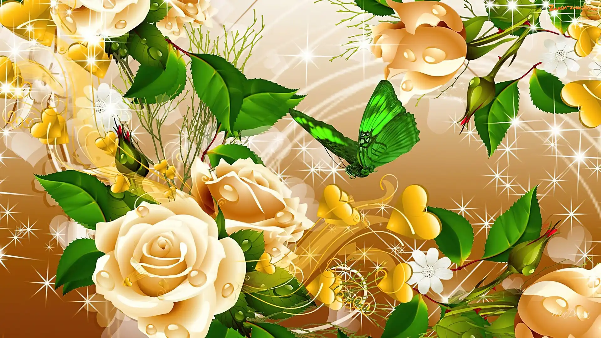 Zdjęcie: Róże, Art, Kremowe, Motyl