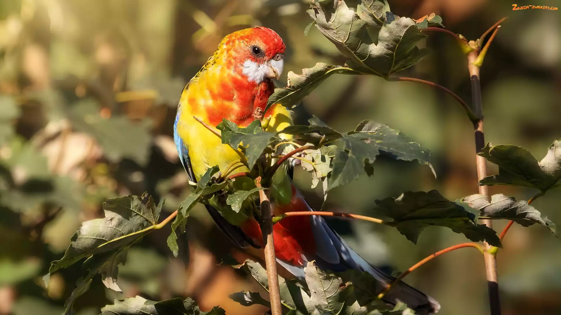 Zdjęcie: Papuga, Rozella wschodnia, Liście, Gałązki
