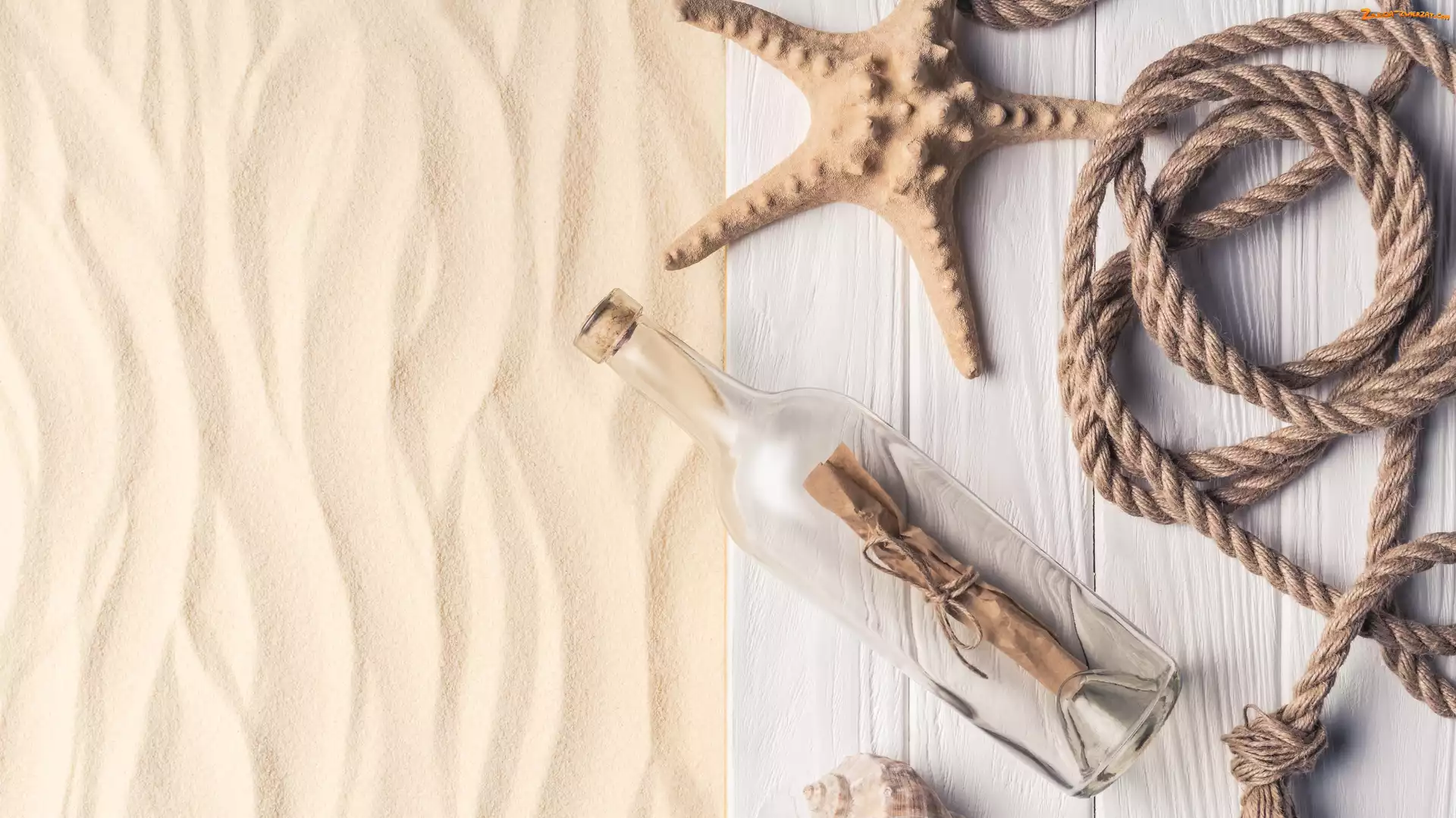 Kompozycja, Rozgwiazda, Piasek, Lina, Lato, Deski, Butelka