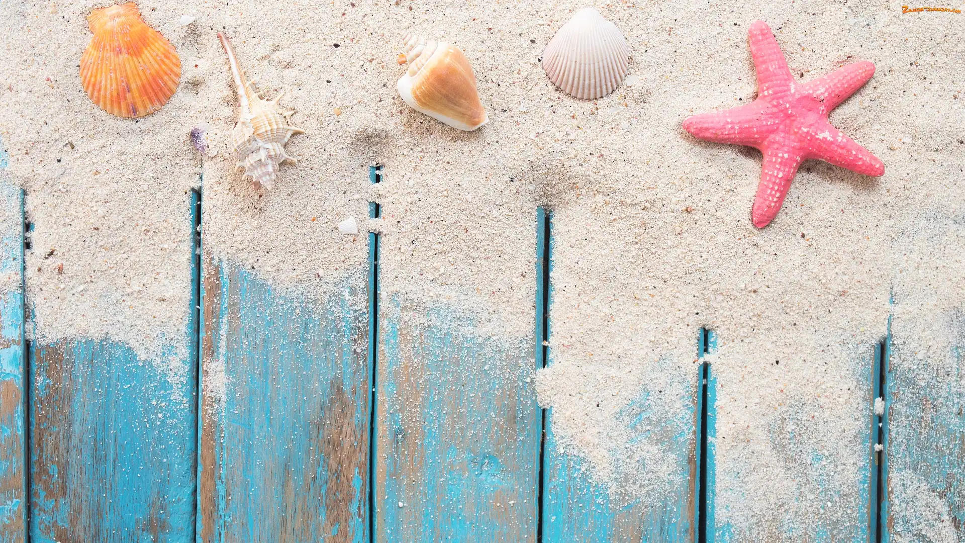 Zdjęcie: Rozgwiazda, Deski, Muszelki, Piasek