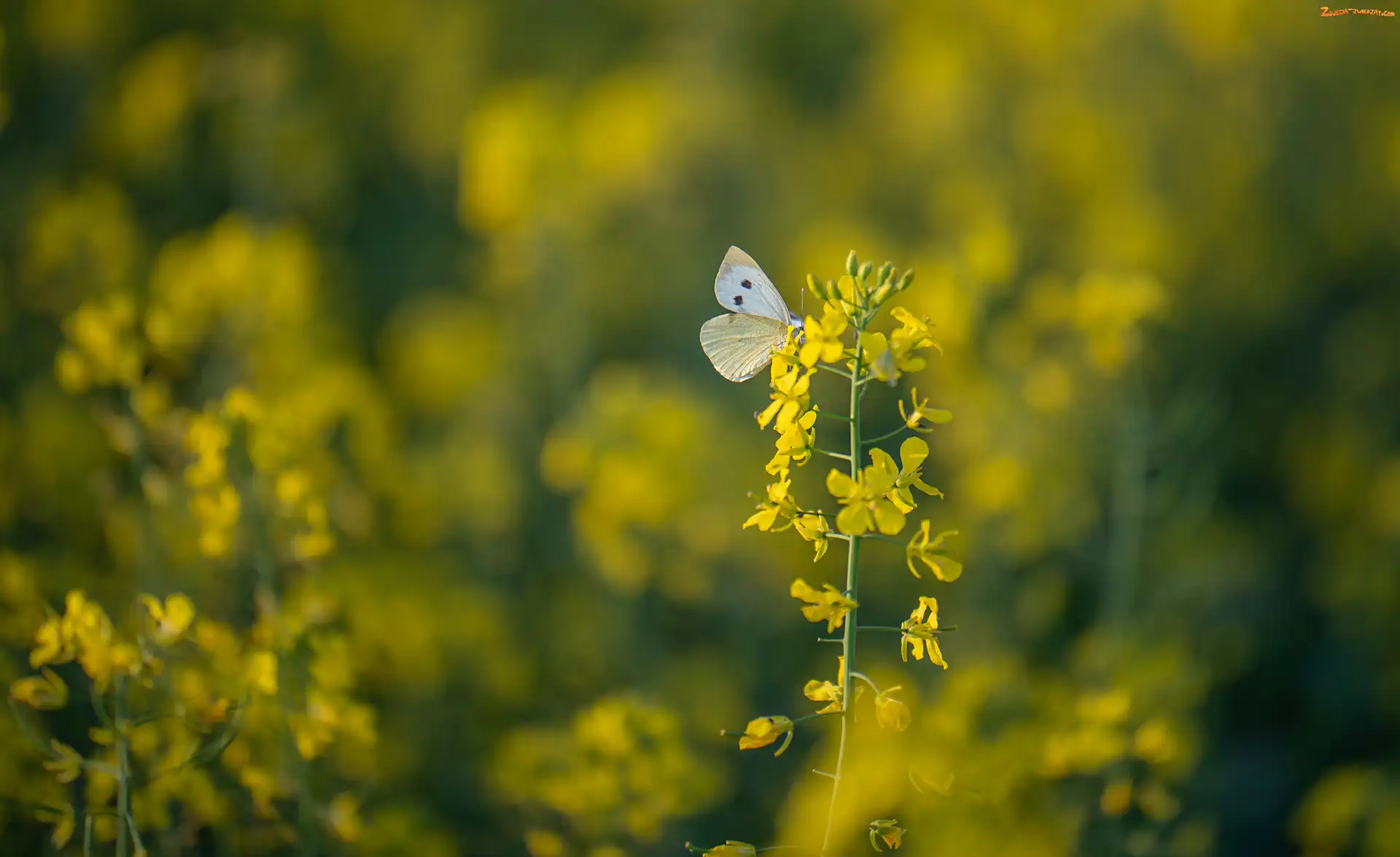 Zdjęcie: Rozmycie, Rzepak, Bielinek, Motyl, Roślina