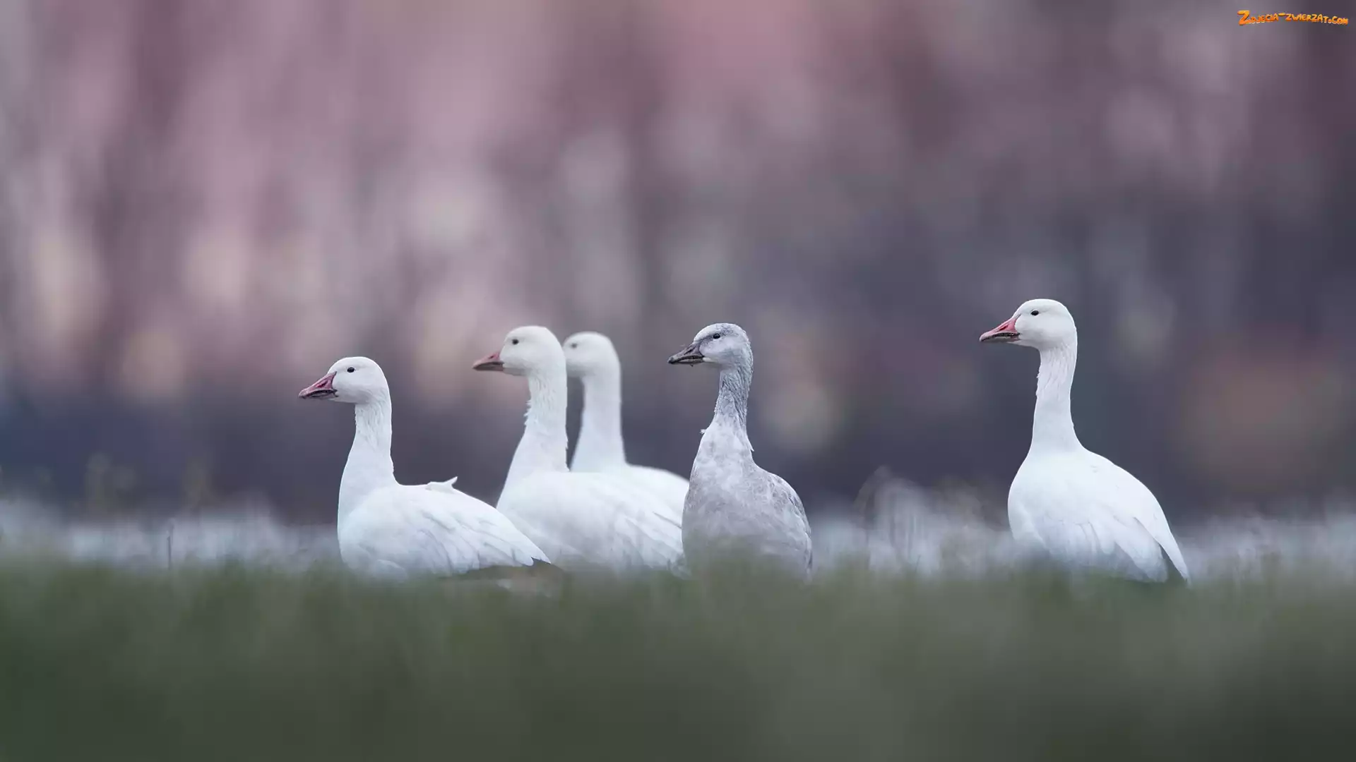 Rozmycie, Trawa, Gęsi, Ptaki, Śnieżyce duże