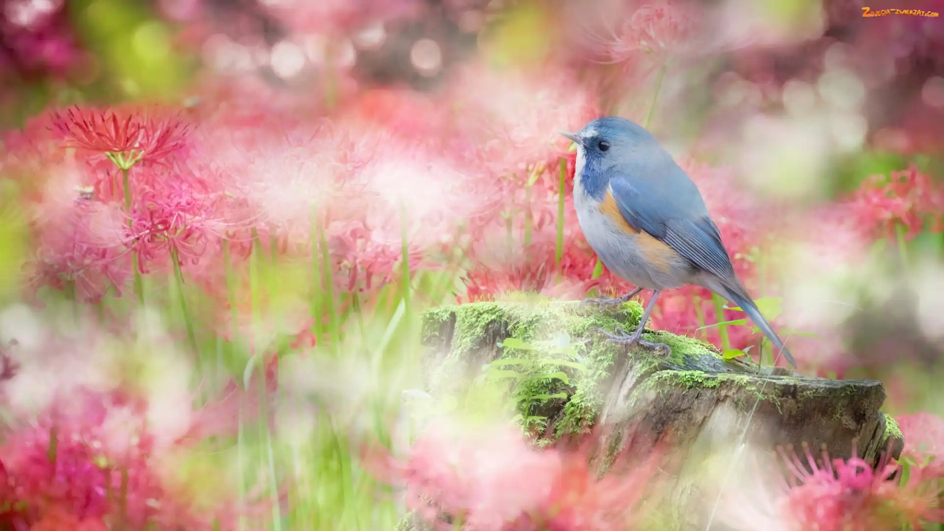 Zdjęcie: Rozmycie, Różowe, Modraczek zwyczajny, Ptak, Kwiaty
