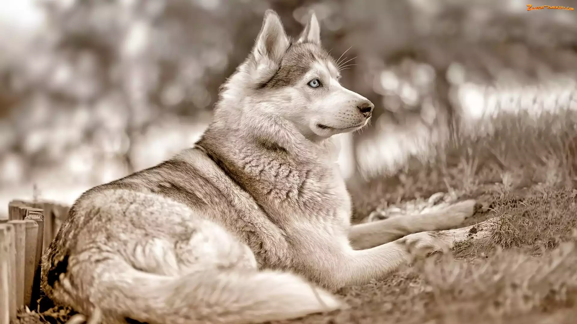 Zdjęcie: Rozmycie, Białe, Husky, Siberian, Czarno