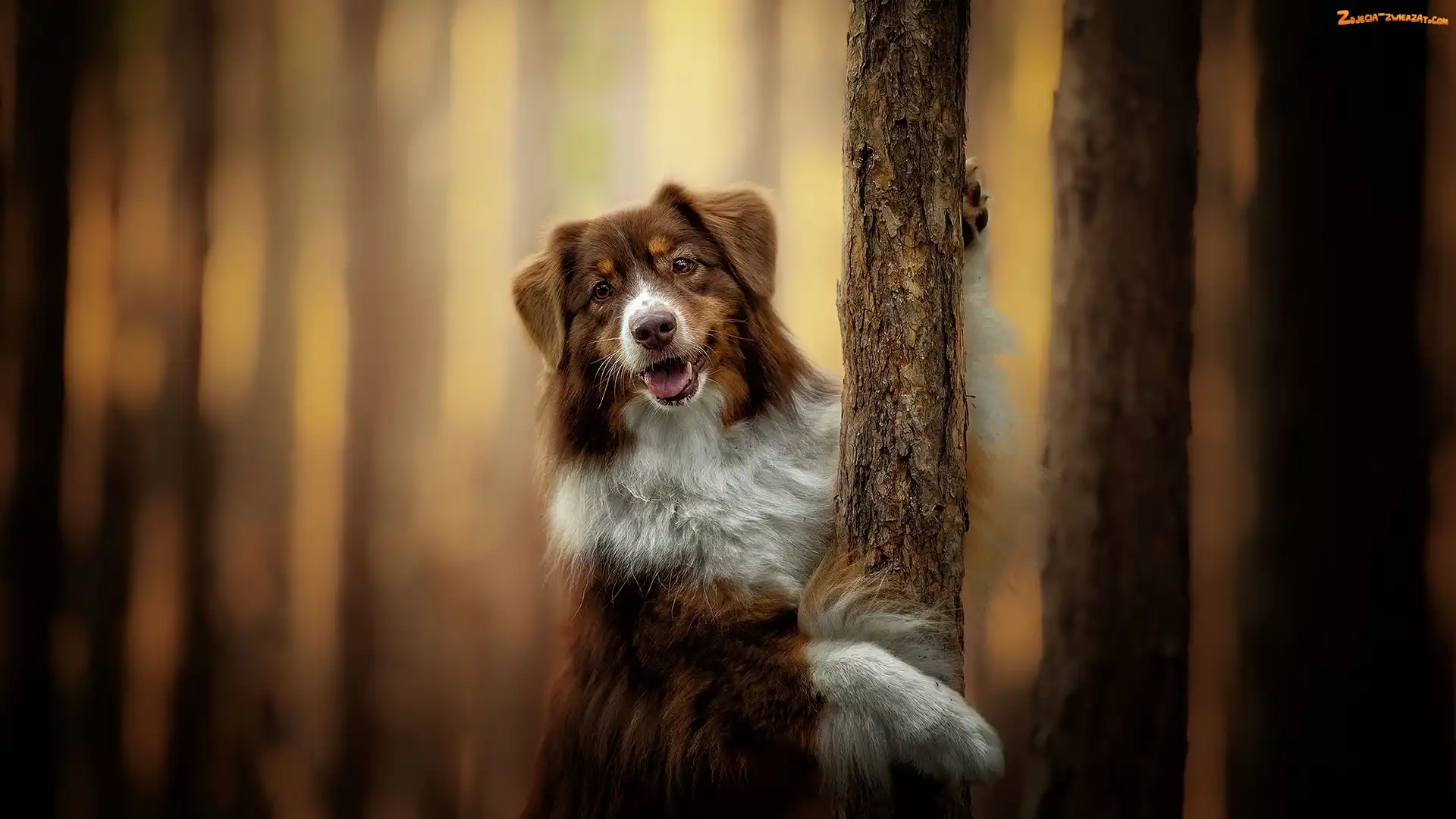 Zdjęcie: Rozmyte tło, Owczarek australijski, Drzewa