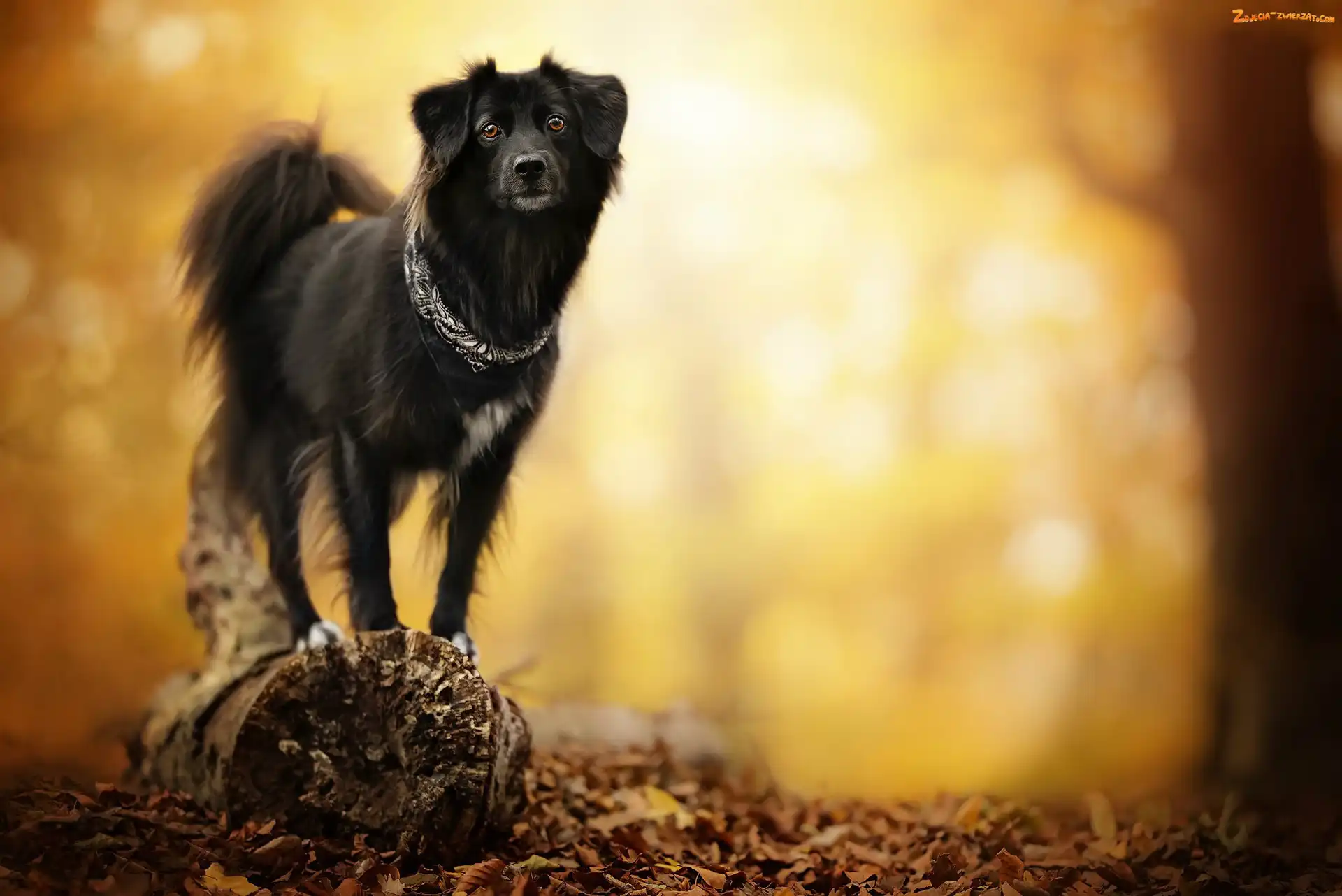 Zdjęcie: Rozmyte tło, Pies, Pniak