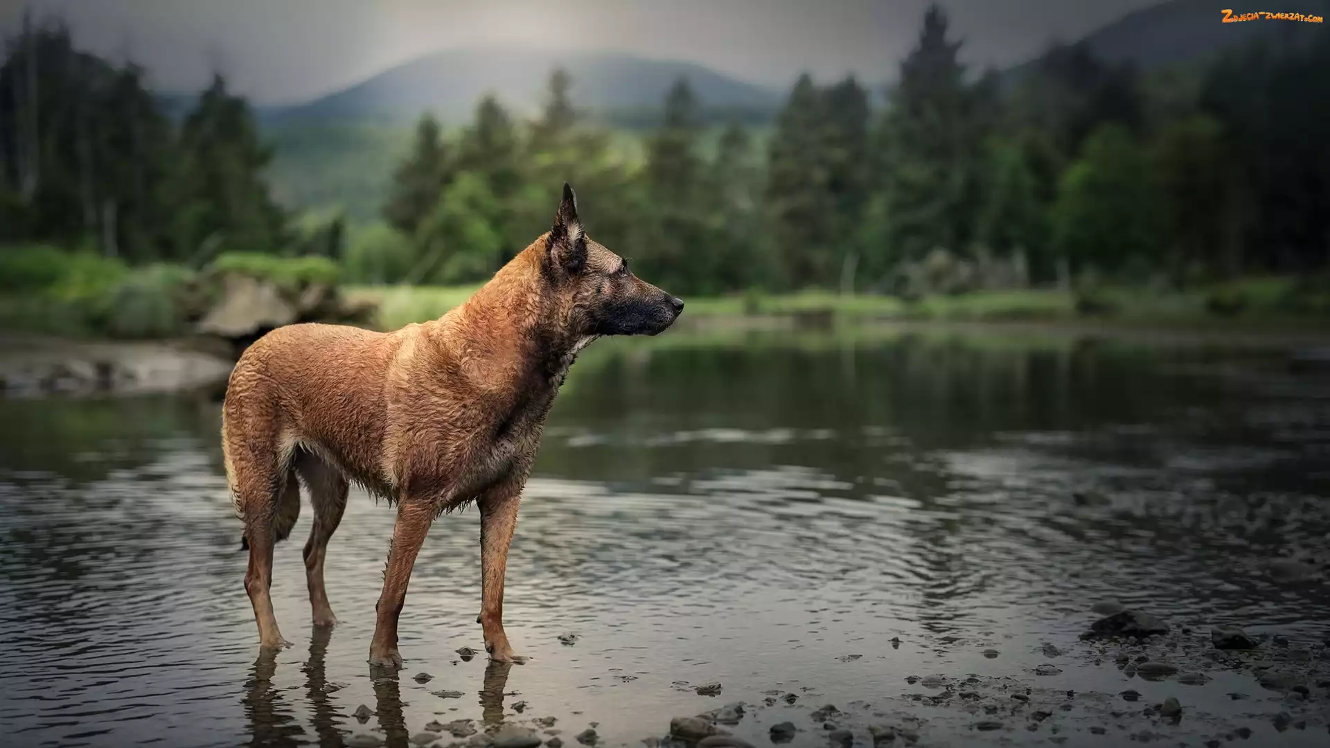 Las, Rozmyty, Owczarek belgijski Malinois, Pies, Rzeka