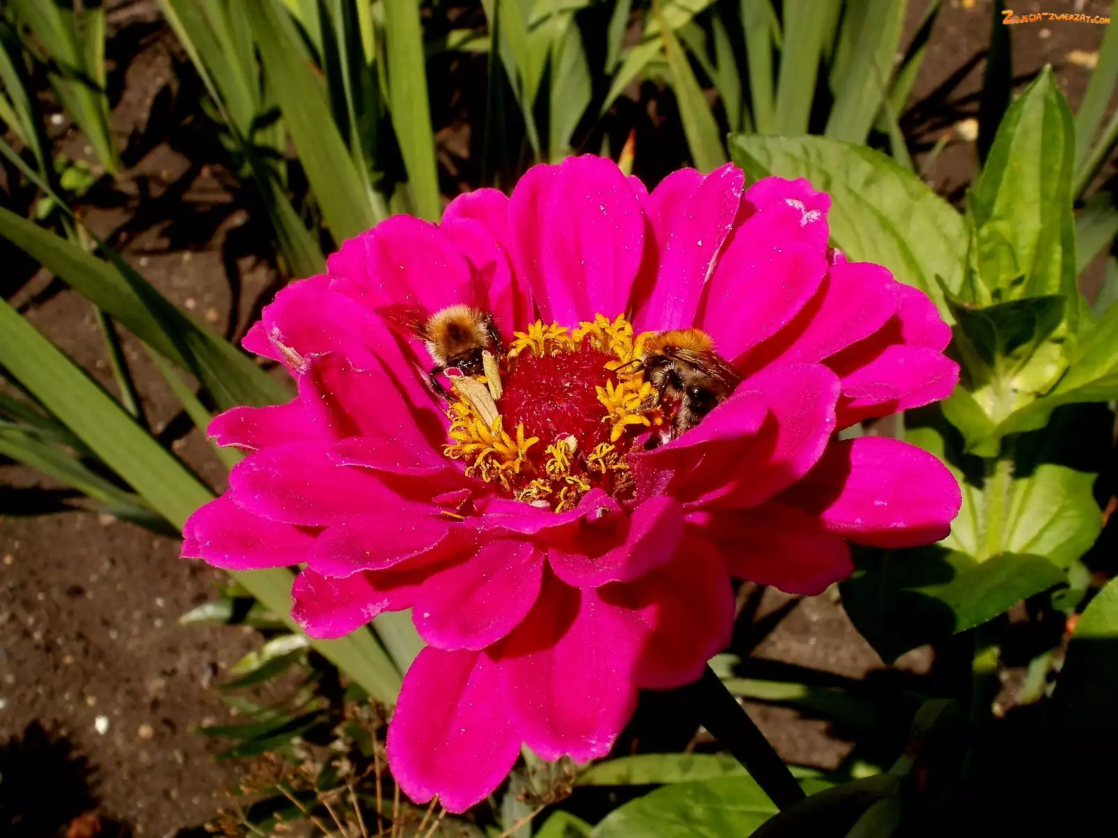 Zdjęcie: Różowa, Trzmiele, Cynia, Ogród