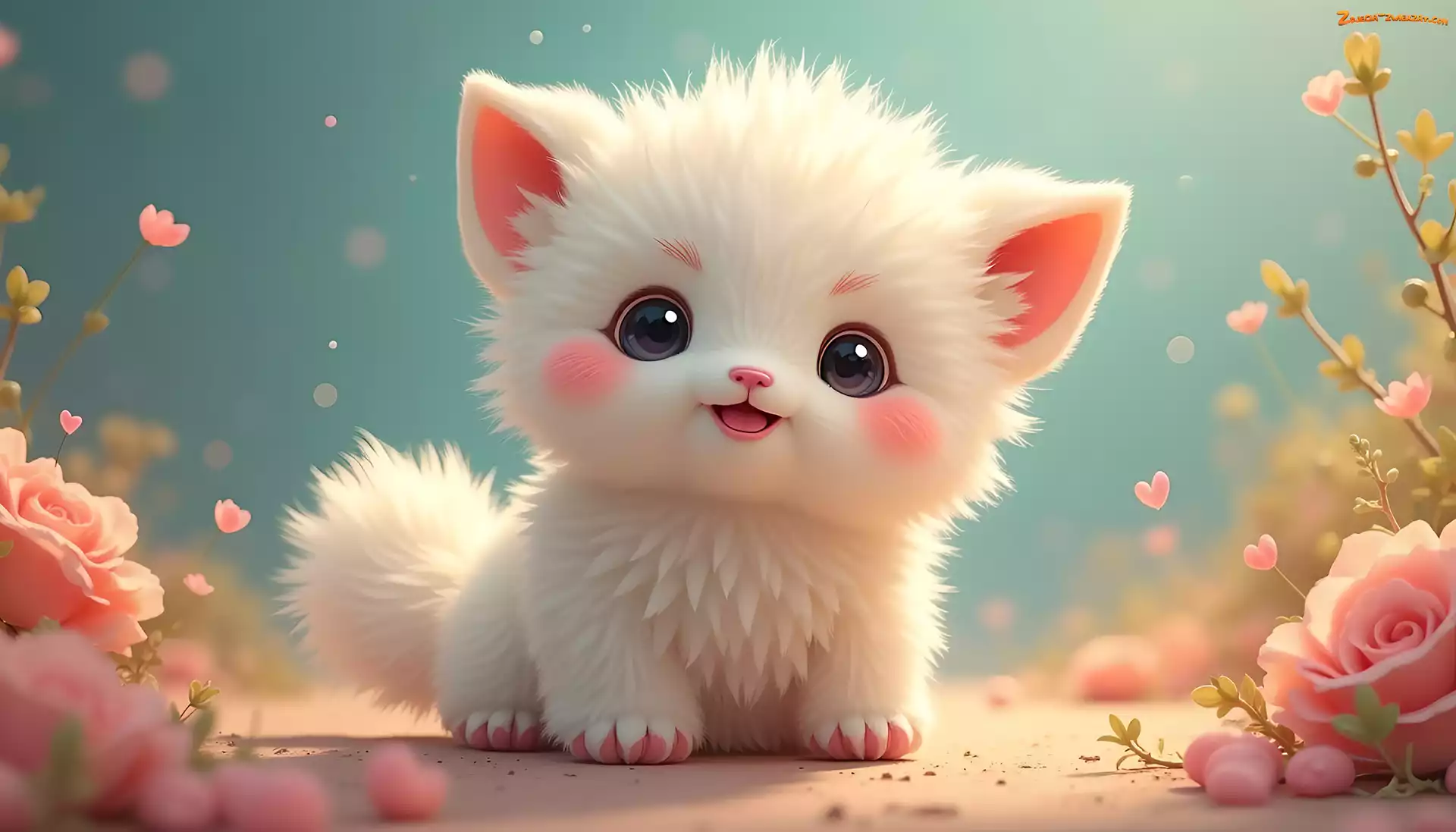 Policzki, Różowe, Grafika, Biały, Kot