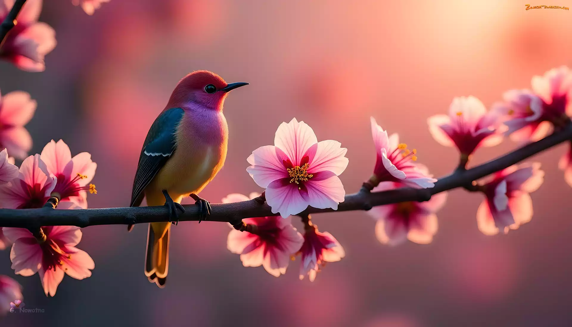 Zdjęcie: Kwiaty, Różowe, Grafika, Kolorowy, Ptak