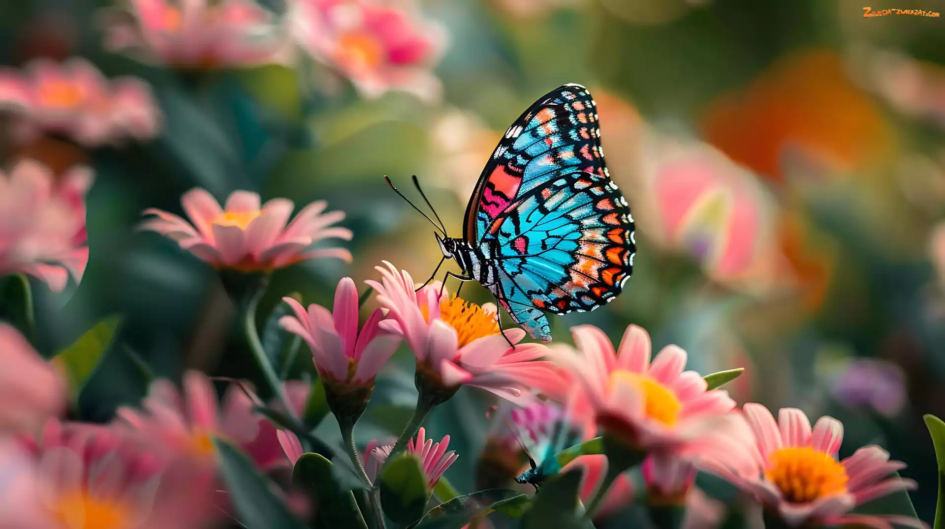 Zdjęcie: Kolorowy, Motyl, Kwiaty, Różowe