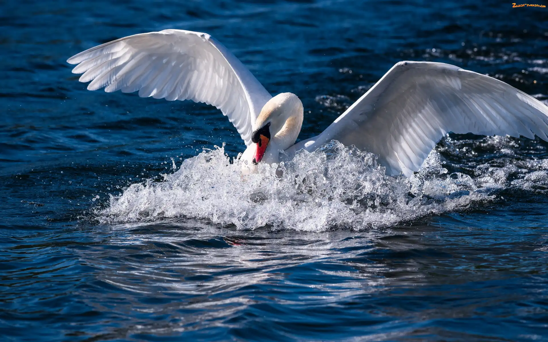 Rozpostarte, Woda, Łabędź, Skrzydła