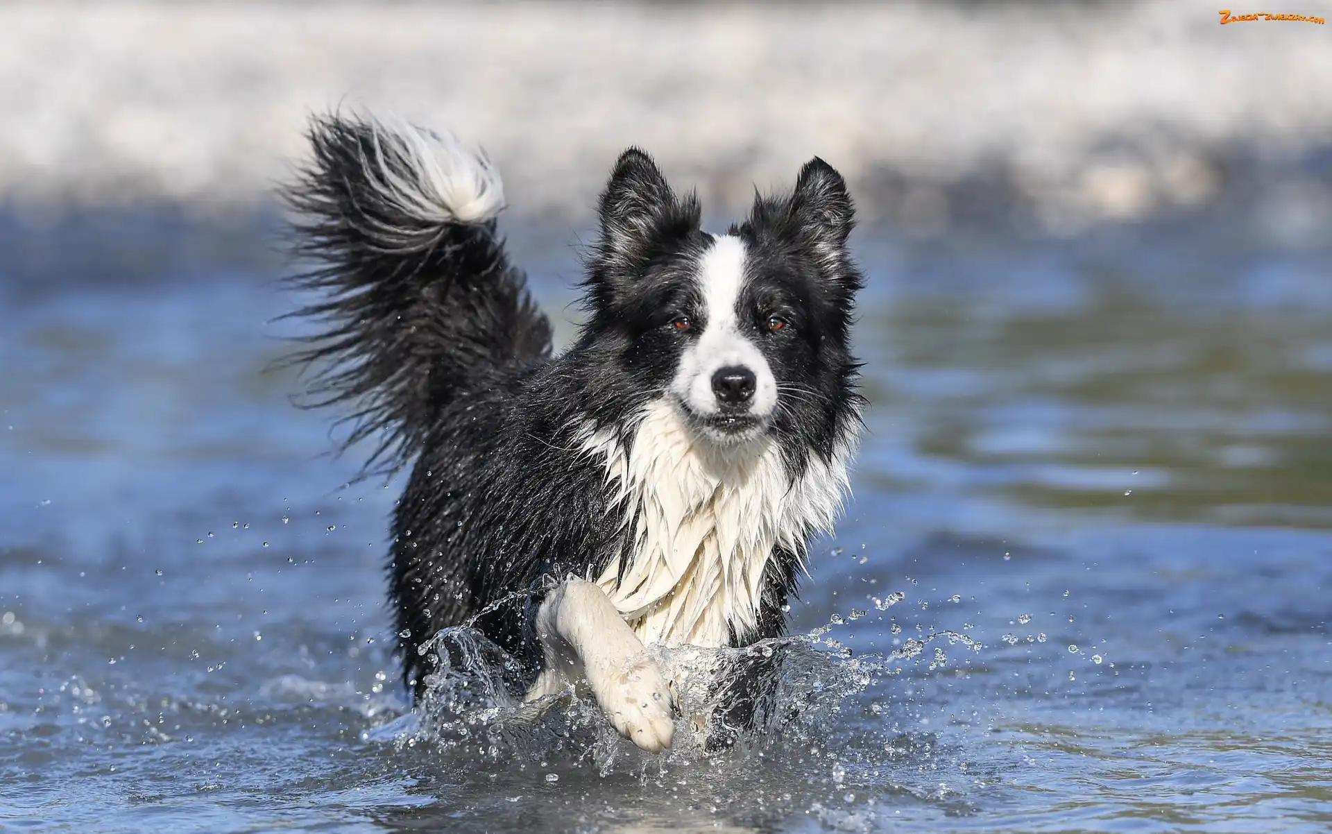 Rozprysk, Woda, Pies, Biegnący, Border collie