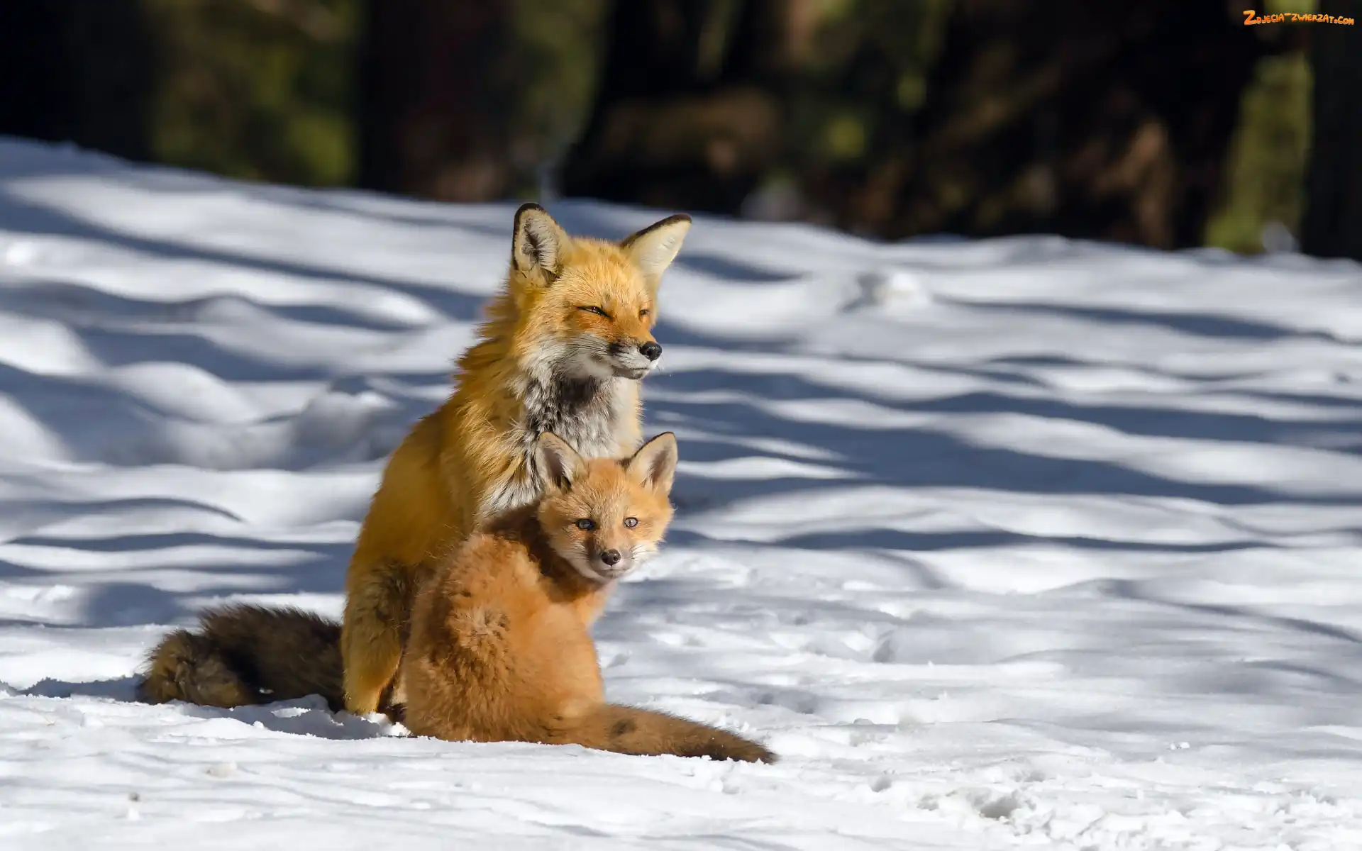 Zdjęcie: Rude, Zima, Dwa, Lisy