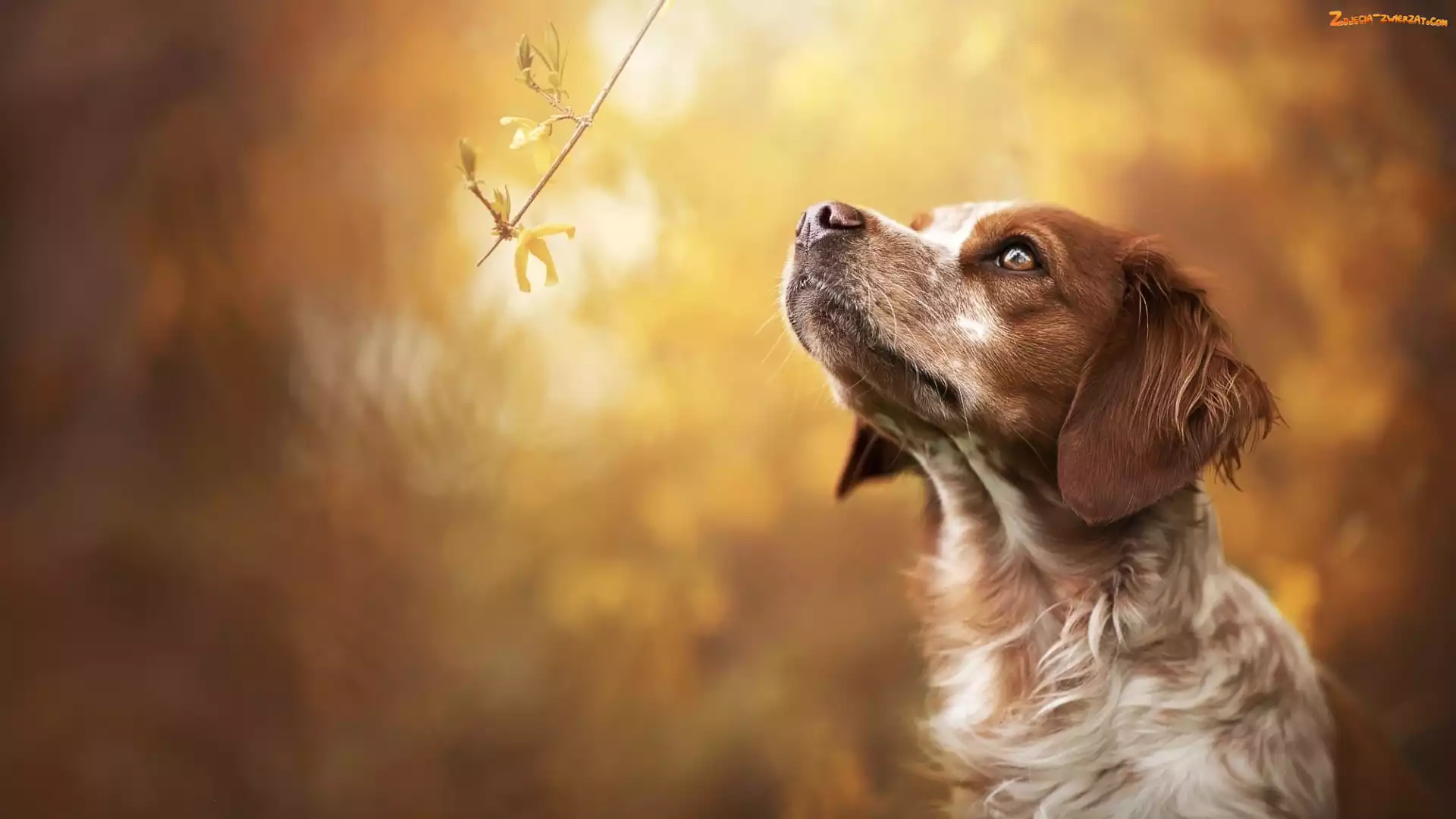 Zdjęcie: Gałązka, Rudo-biały, Epagneul breton, Pies, Spaniel bretoński