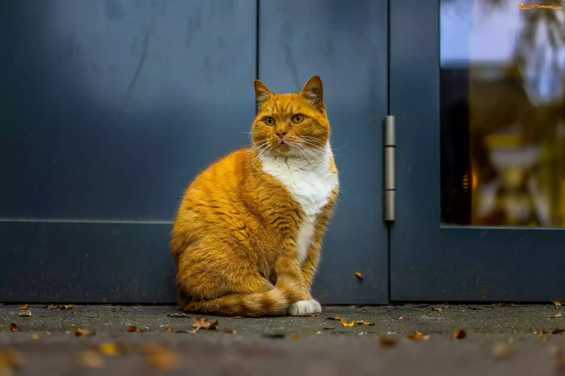 Zdjęcie: Rudo-biały, Drzwi, Siedzący, Kot