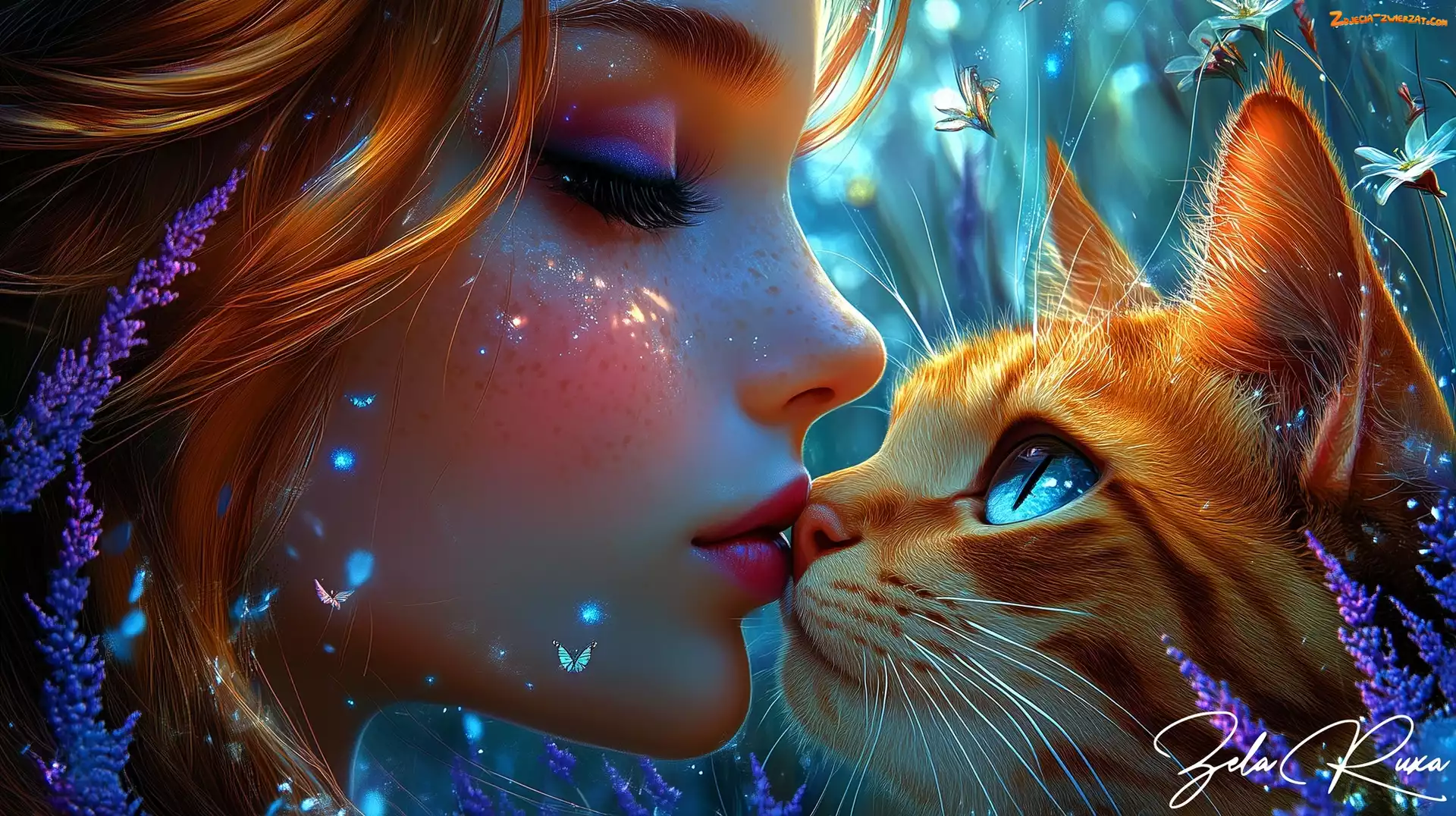 Dziewczyna, Rudy, Grafika AI, Kot