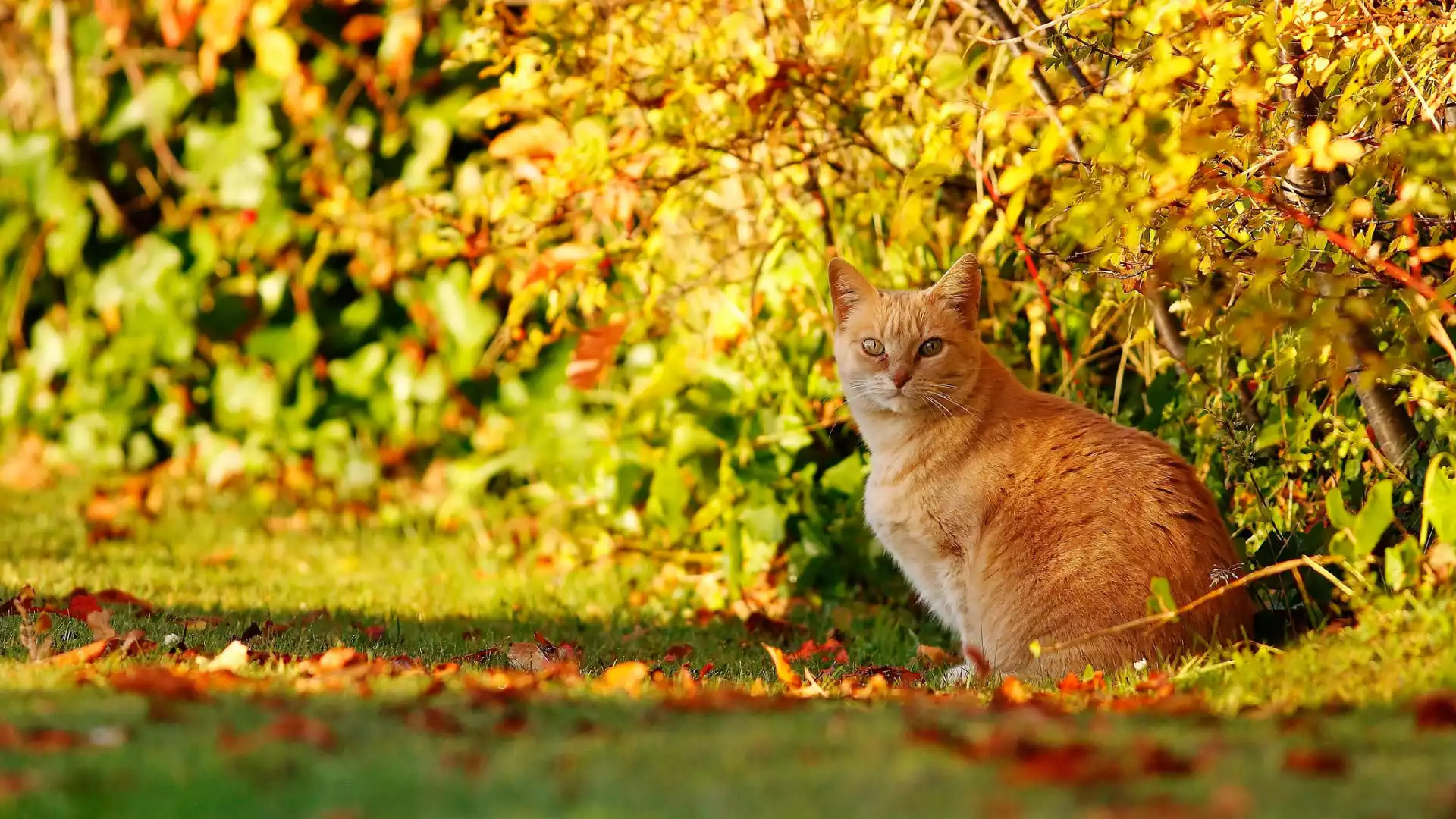 Zdjęcie: Rudy, Krzewy, Jesień, Kot