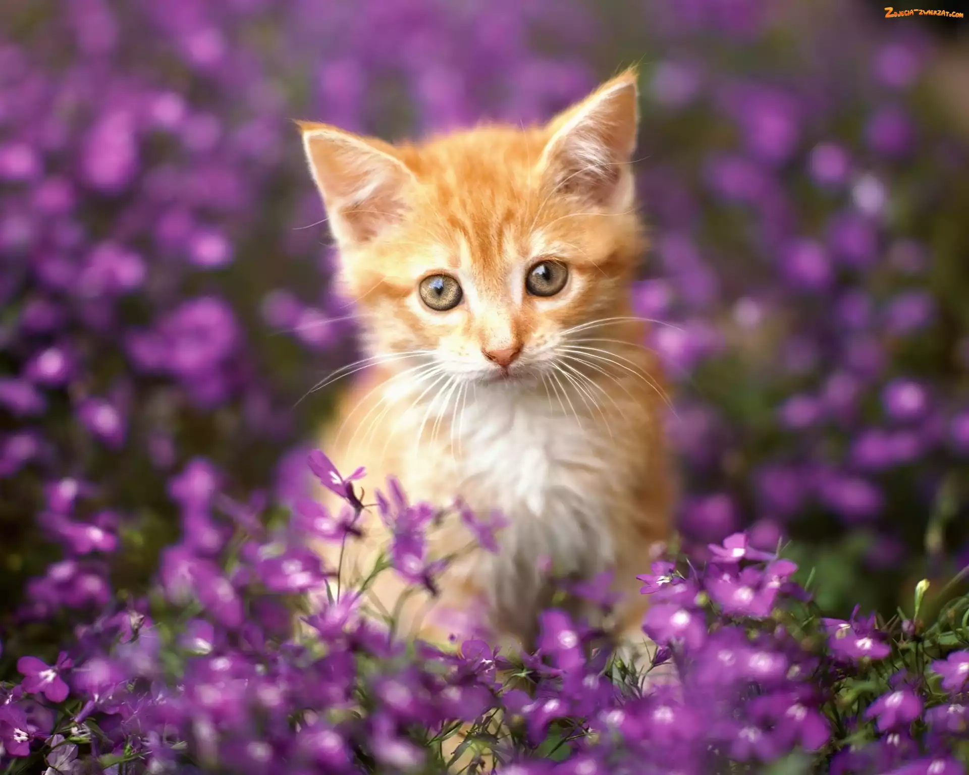 Zdjęcie: Rudy, Kwiatki, Mały, Kotek