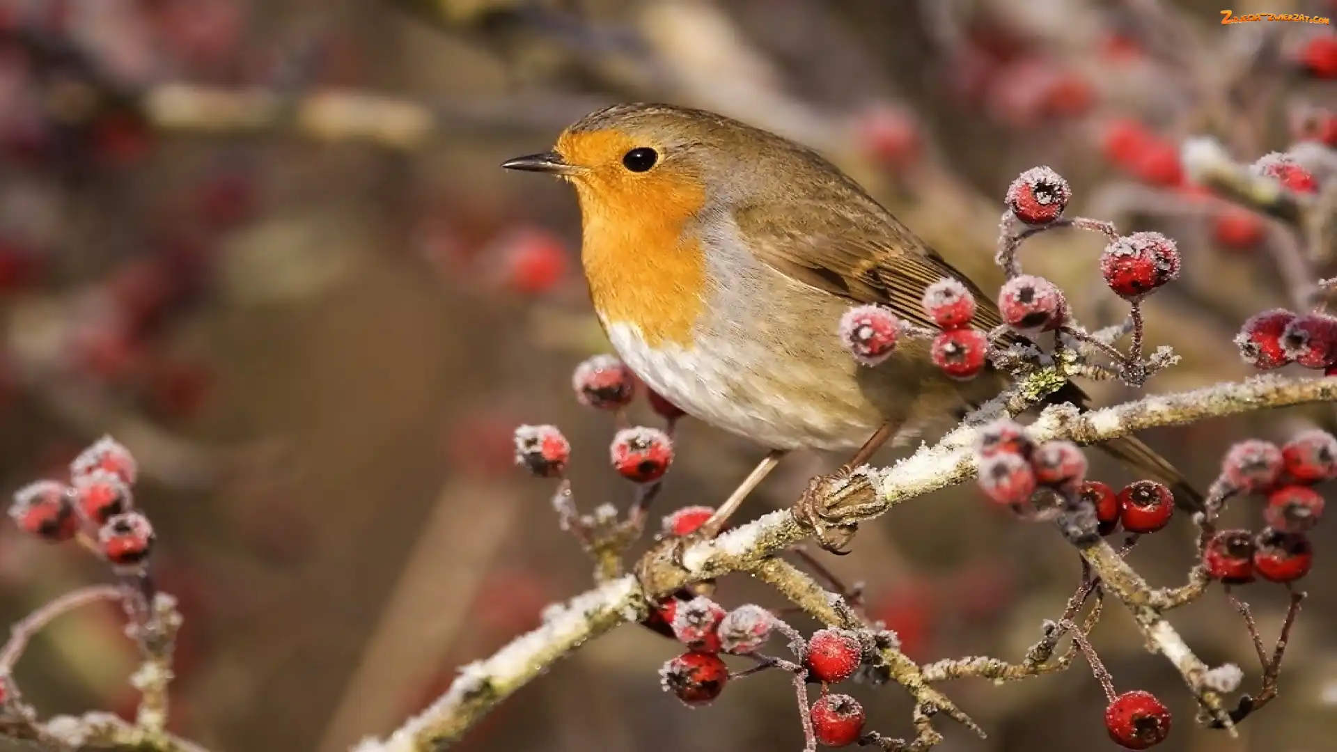 Zdjęcie: Rudzik, Jarzębiny, Ptaszek, Gałąź