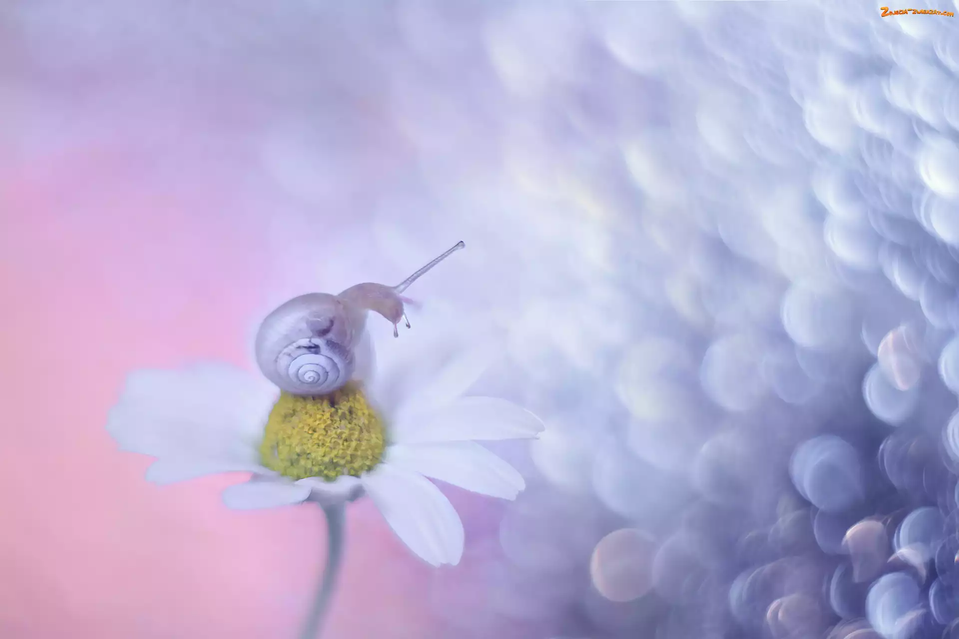 Zdjęcie: Ślimak, Rumian polny, Kwiat, Biały