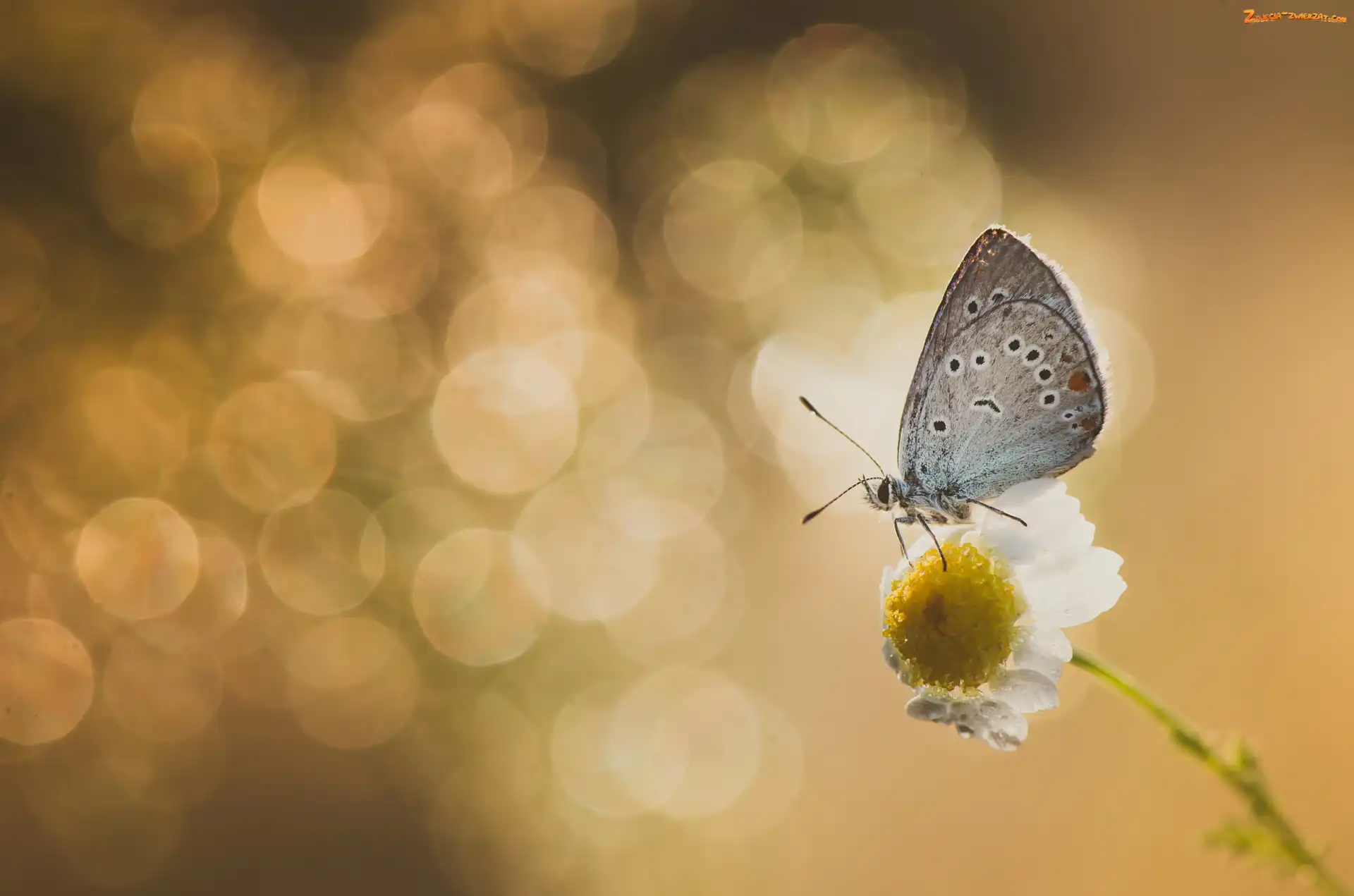 Zdjęcie: Rumianek, Modraszek ikar, Kwiatek, Motyl