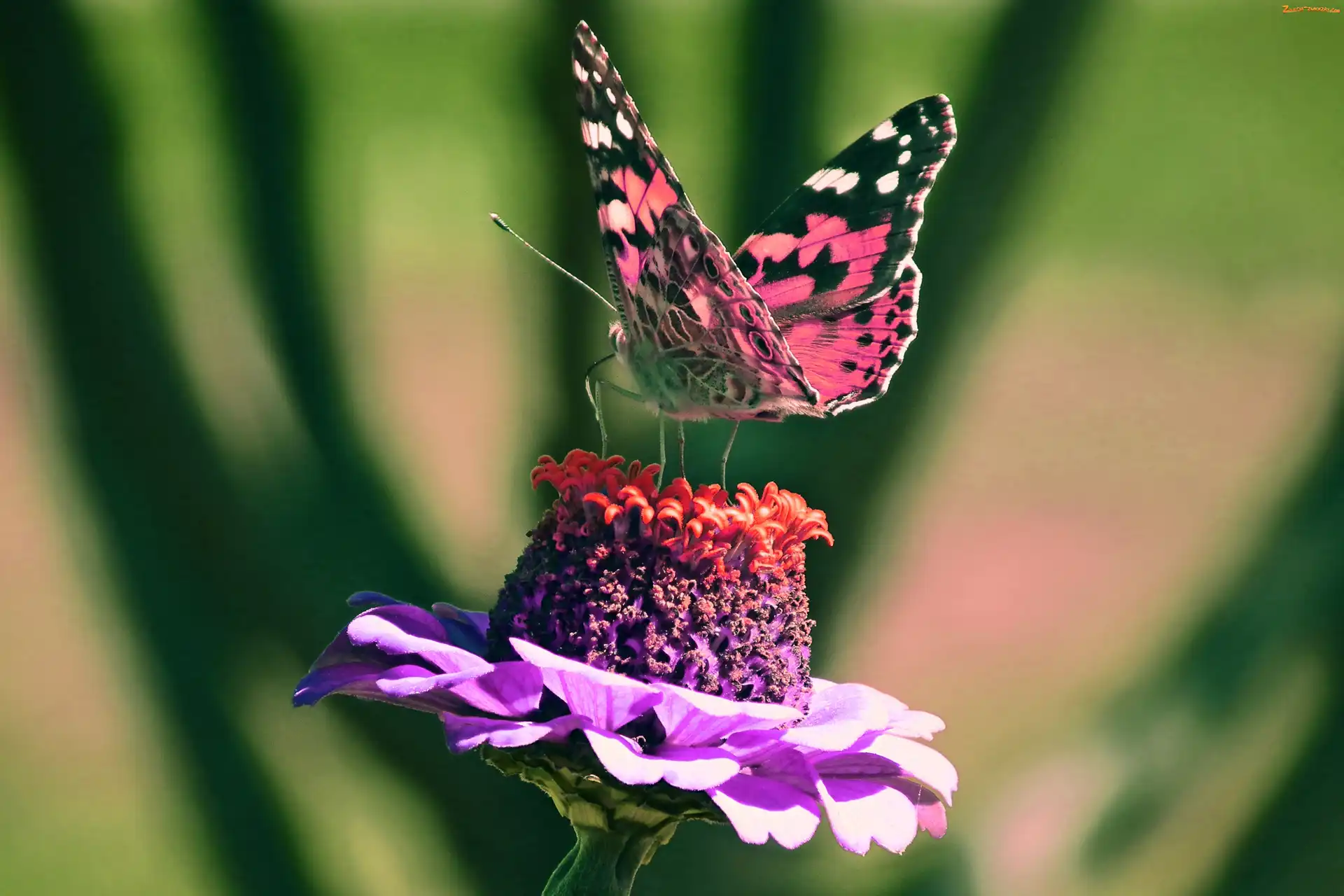 Rusałka osetnik, Cynia, Motyl, Kwiat