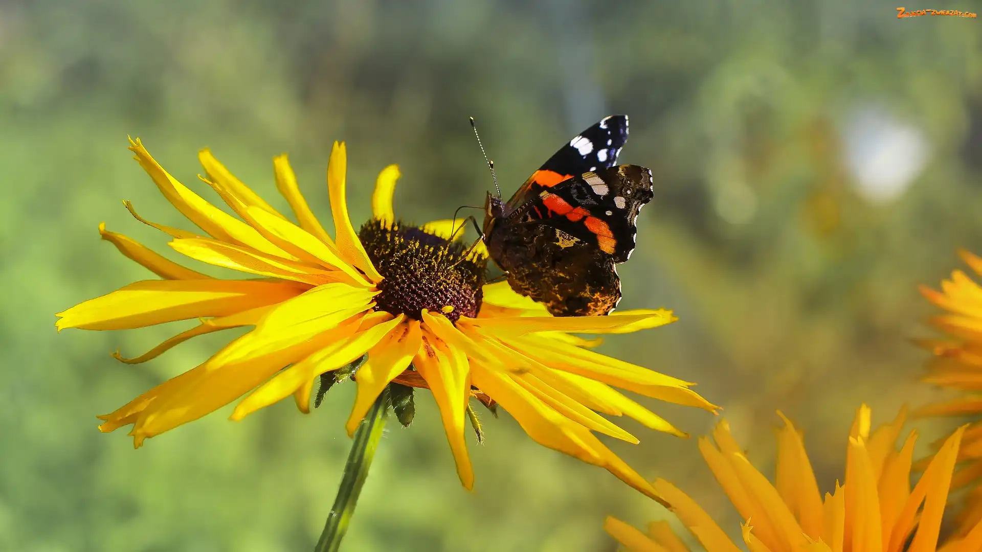 Zdjęcie: Rusałka admirał, Motyl, Kwiat, Żółty, Rudbekia