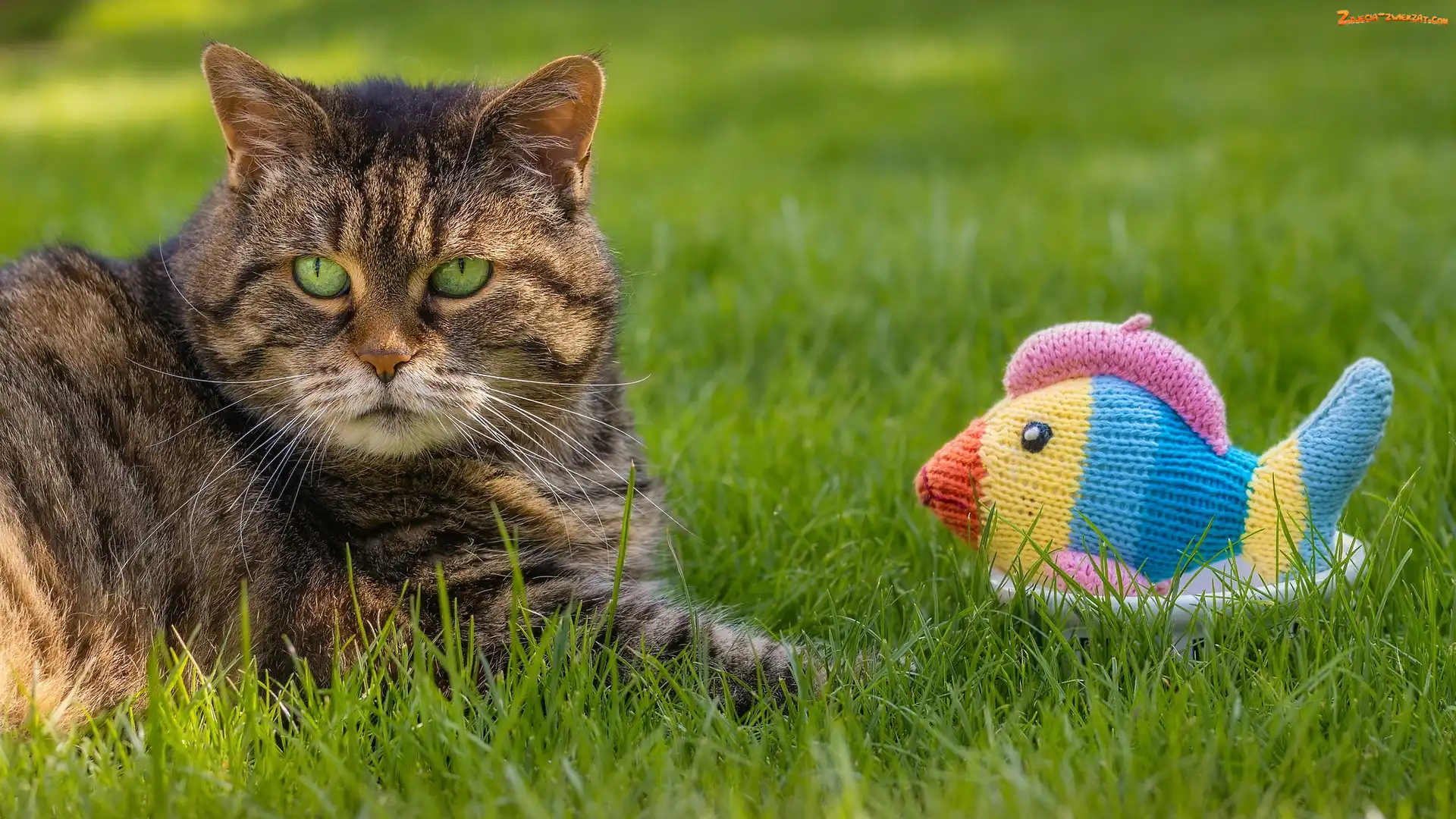 Ryba, Wełniana, Kot, Bury, Trawa