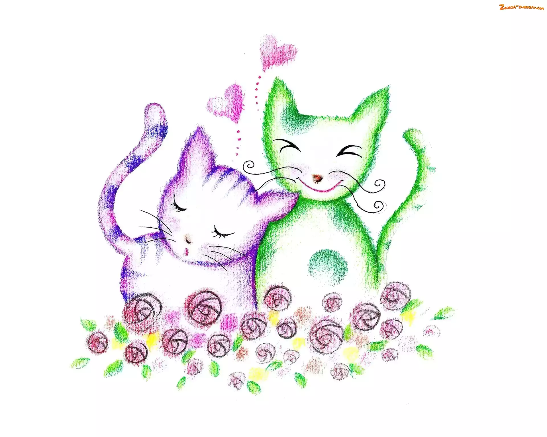 Zdjęcie: Rysunek, Zielony, Kotki, Dwa, Różowy