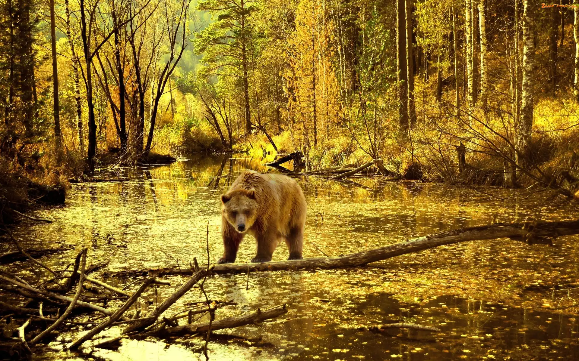 Zdjęcie: Rzeka, Niedzwiedz, Jesień, Światło, Brunatny, Las