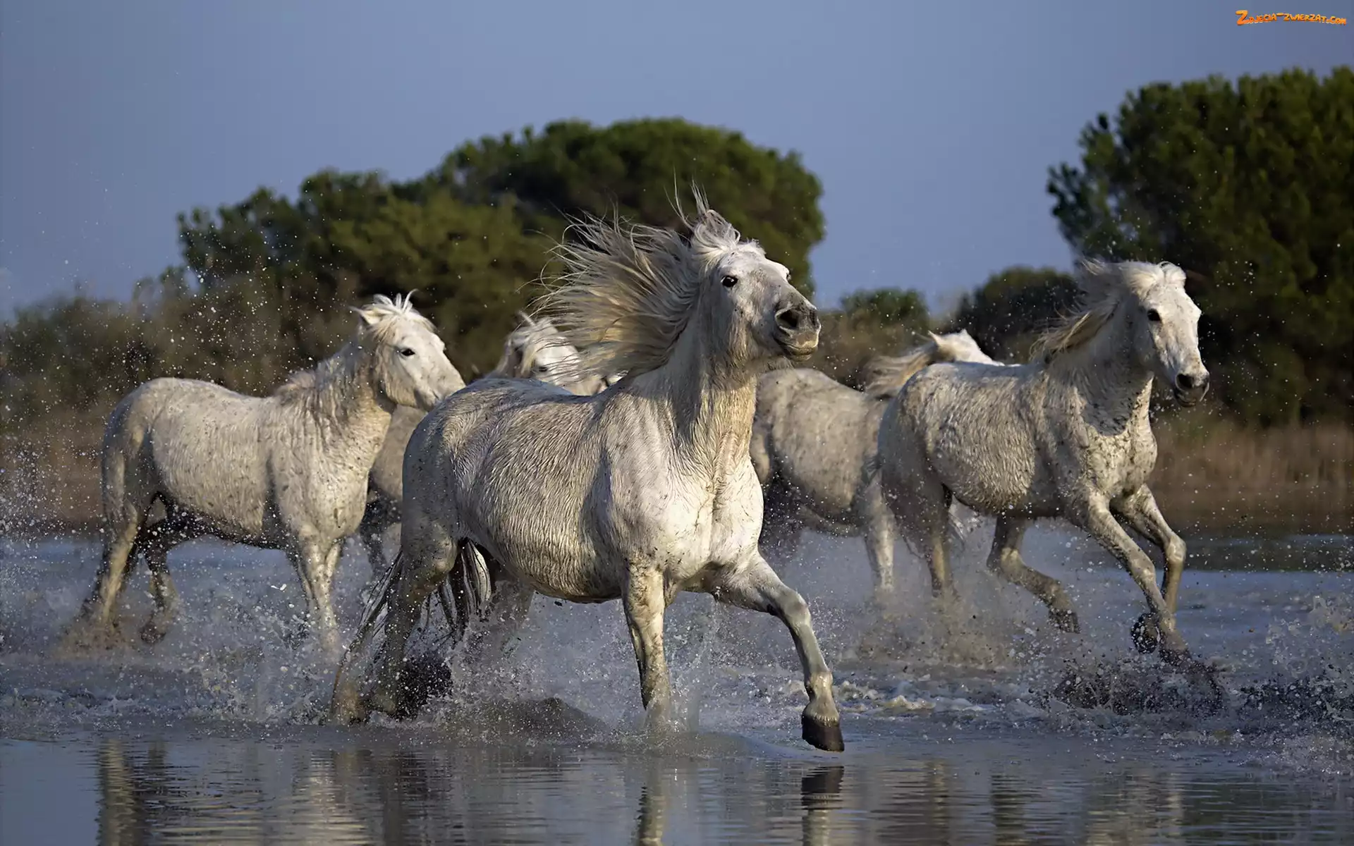 Zdjęcie: Drzewa, Rzeka, Konie