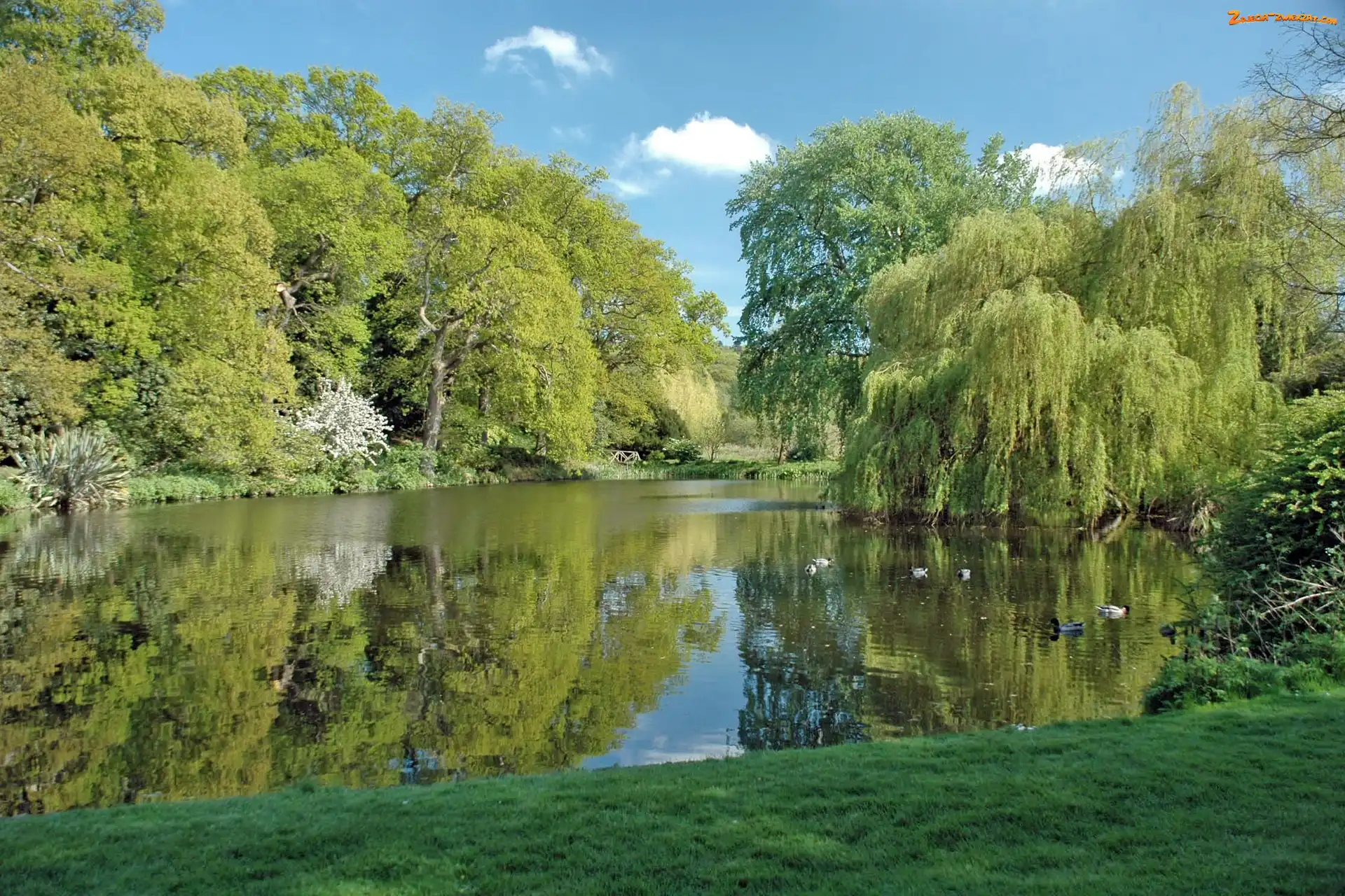 Zdjęcie: Kaczki, Rzeka, Drzewa