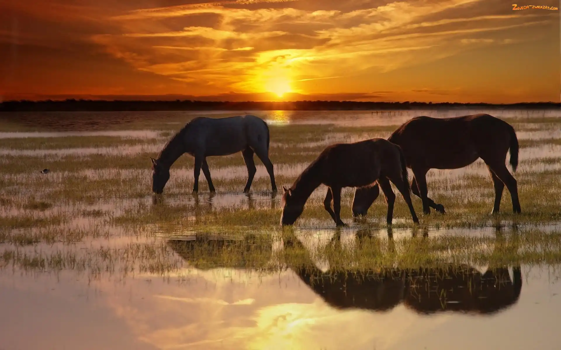 Zdjęcie: Rzeka, Słońca, Konie, Zachód
