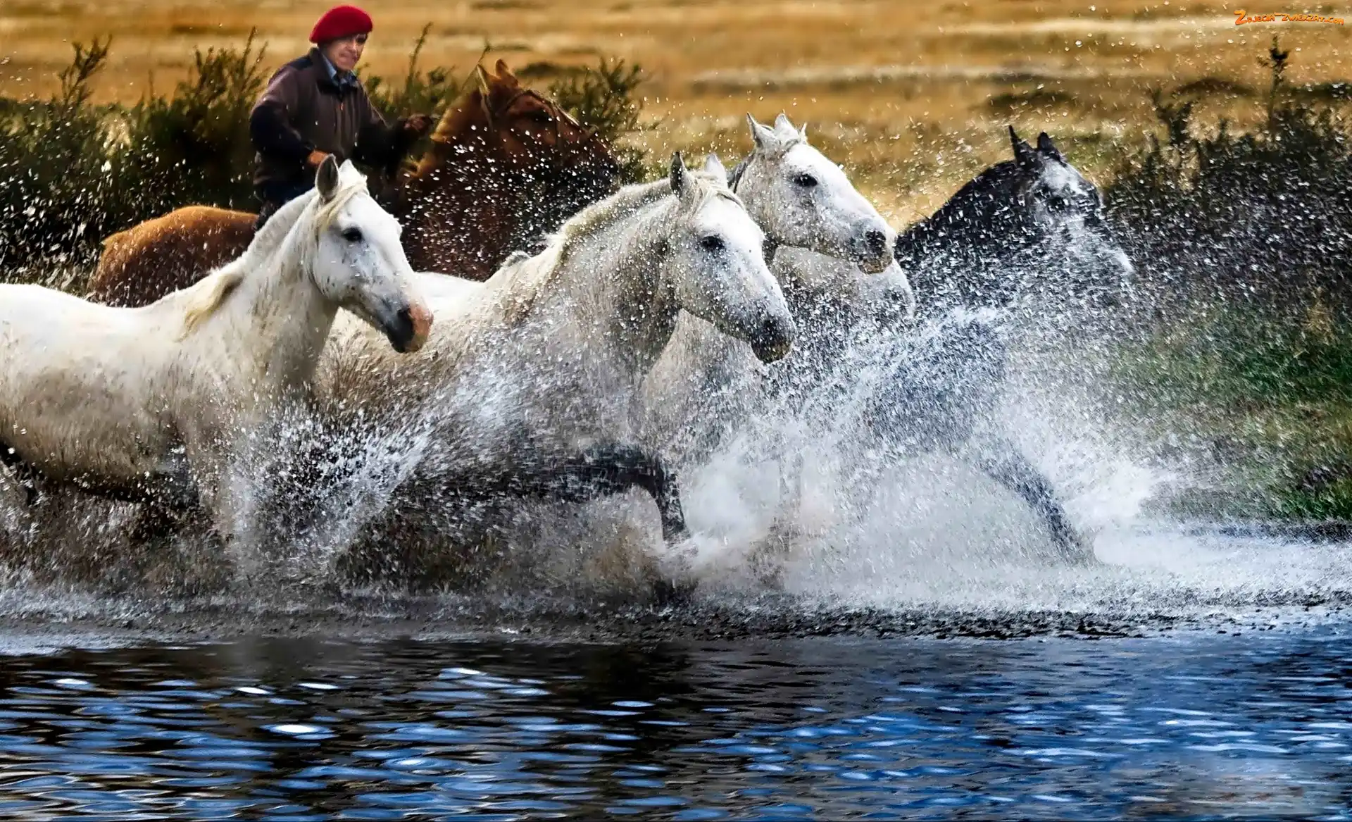 Zdjęcie: Rzeka, Woda, Konie, Rozbryzgująca