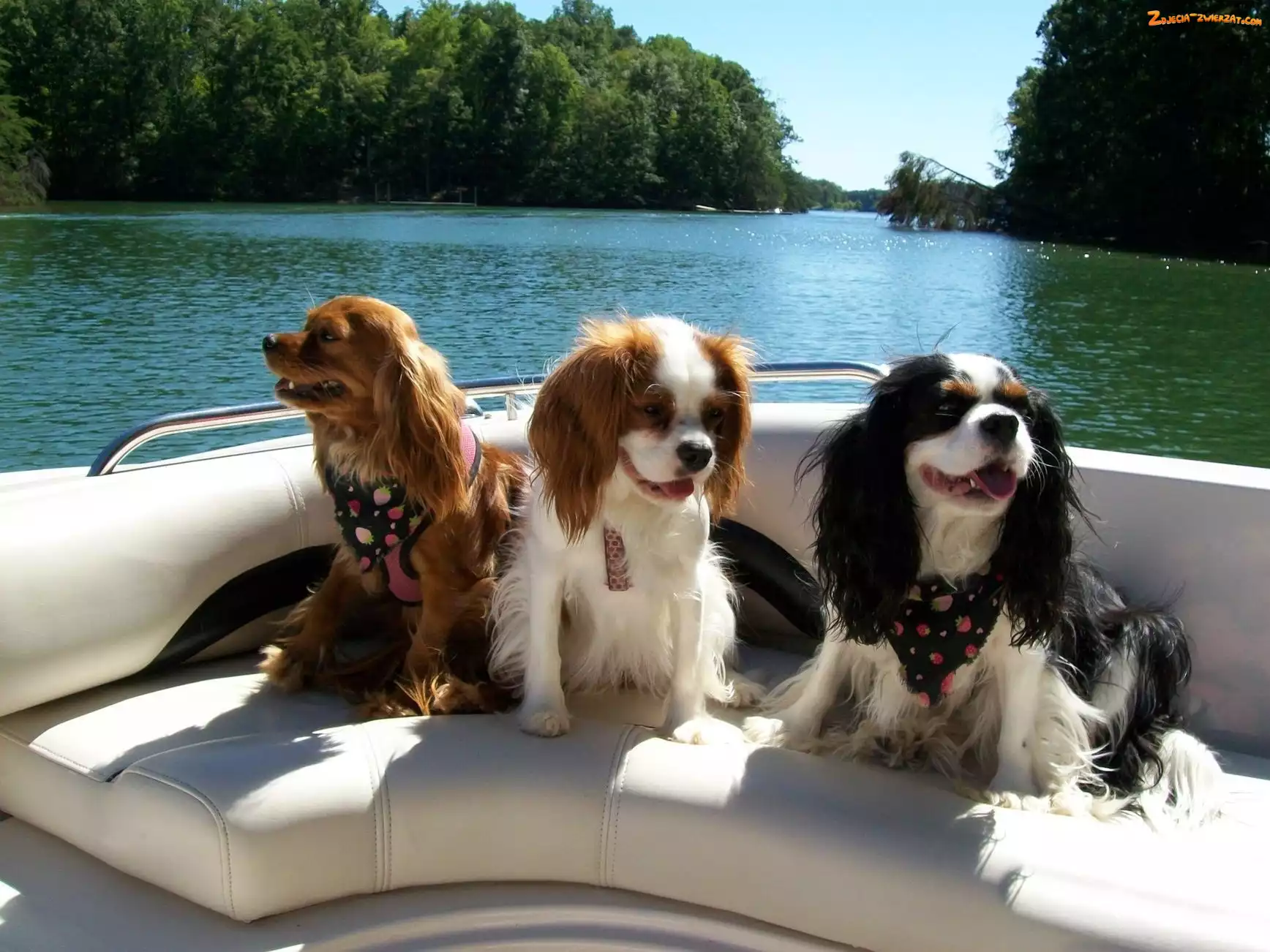 Zdjęcie: Łódź, Spaniele, Rzeka, Trzy