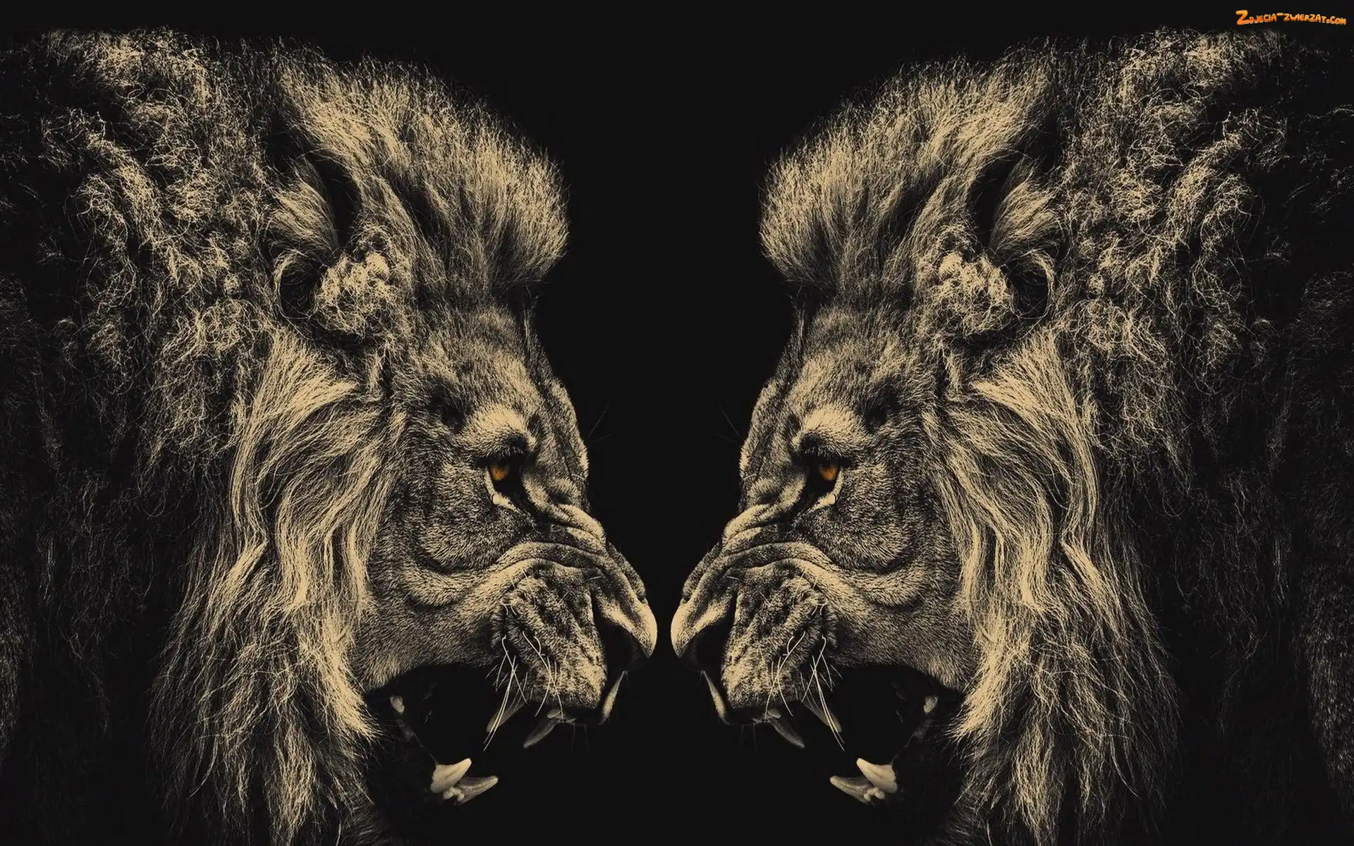 Zdjęcie: Samce, Kły, Lwy, Zwierzęta, Brązowe oczy