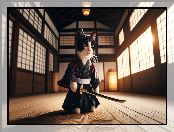 Zdjęcie: Kot, Strój, Katana, Samuraj